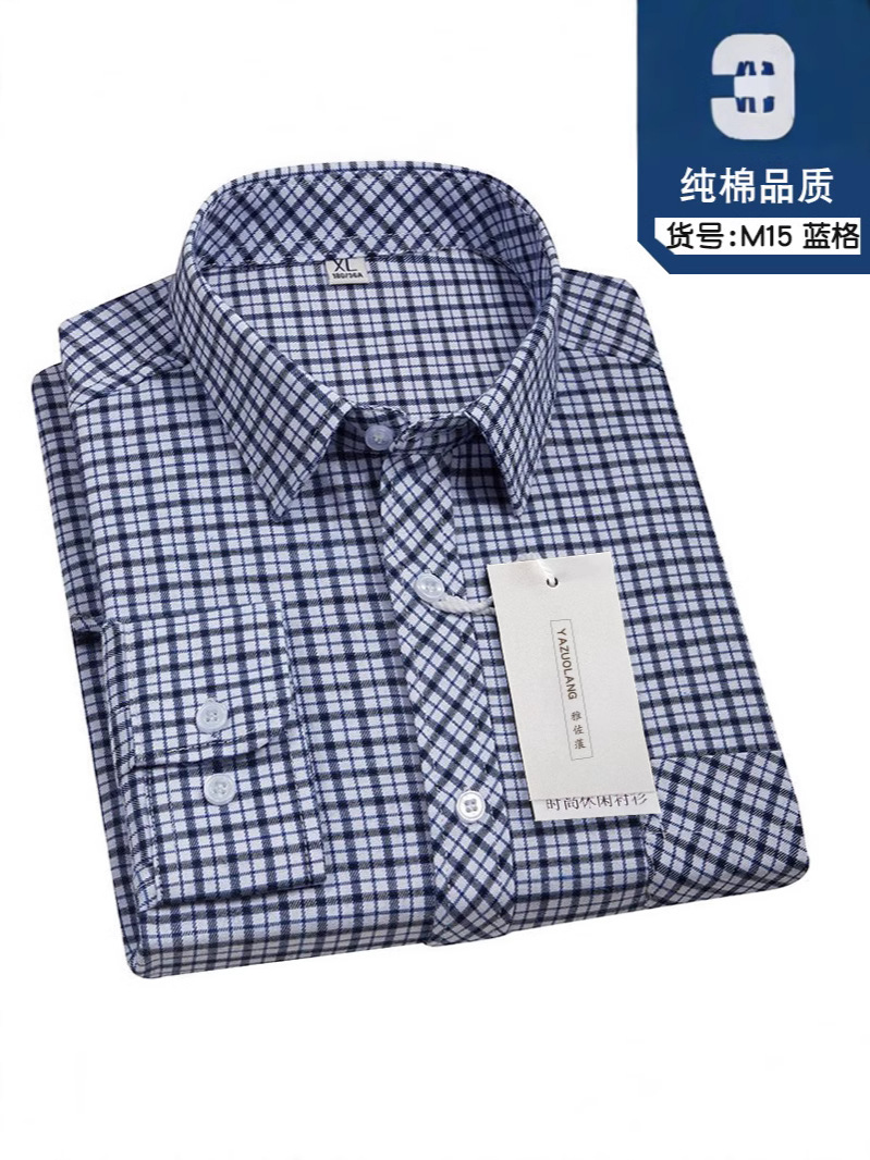 Главная страница > Рубашка из чистого хлопка в клетку с длинным рукавом для мужчин молодого и среднего возраста, повседневная, немнущаяся, свободного кроя с карманами, стильная.