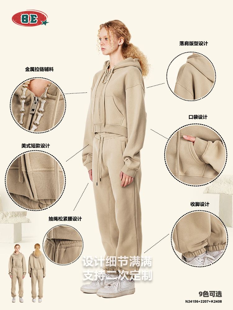 Главная страница > Женский спортивный костюм BE 2025: модная укороченная куртка на молнии и толстовка премиум-класса, комплект из двух предметов для женщин