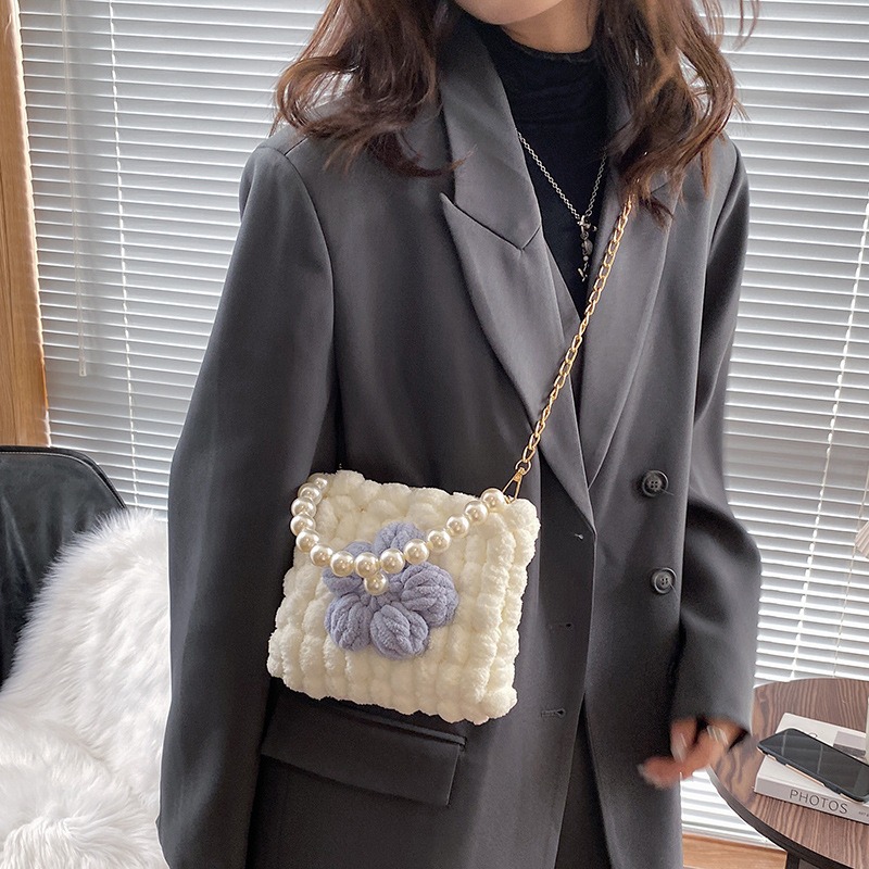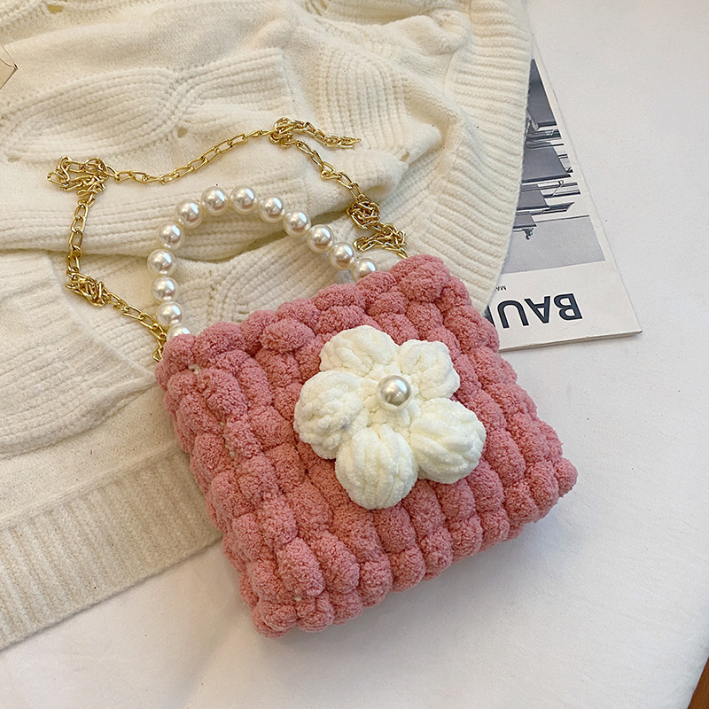 Главная страница > Ручная работа DIY пакет с самодельными материалами, дрожащие сливки, мешки из шерстяной нити шарик, вязание крючком, жемчужная ручная сумка через плечо