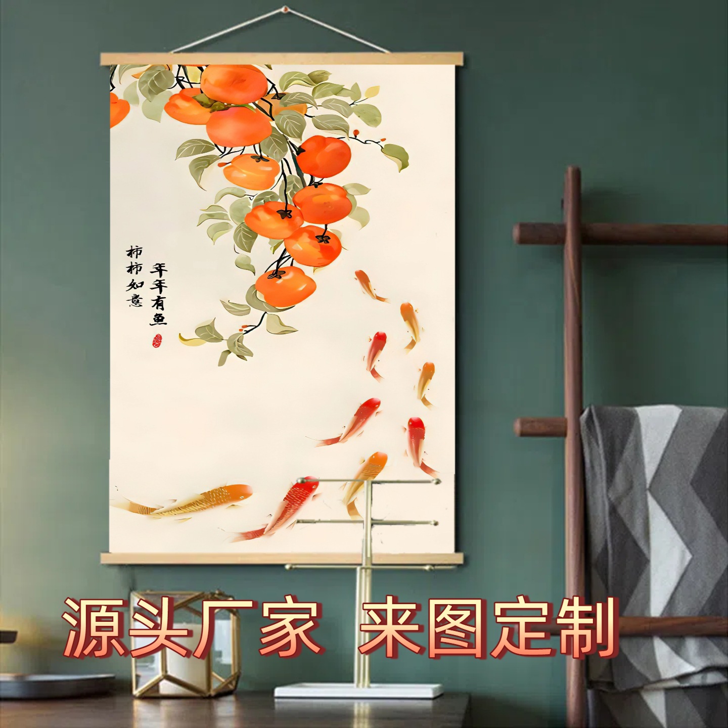 Главная страница > Картина с изображением хурмы для украшения входа, настенная картина для прихожей, фреска с хурмой для входной двери гостиной, символизирующая благословения.