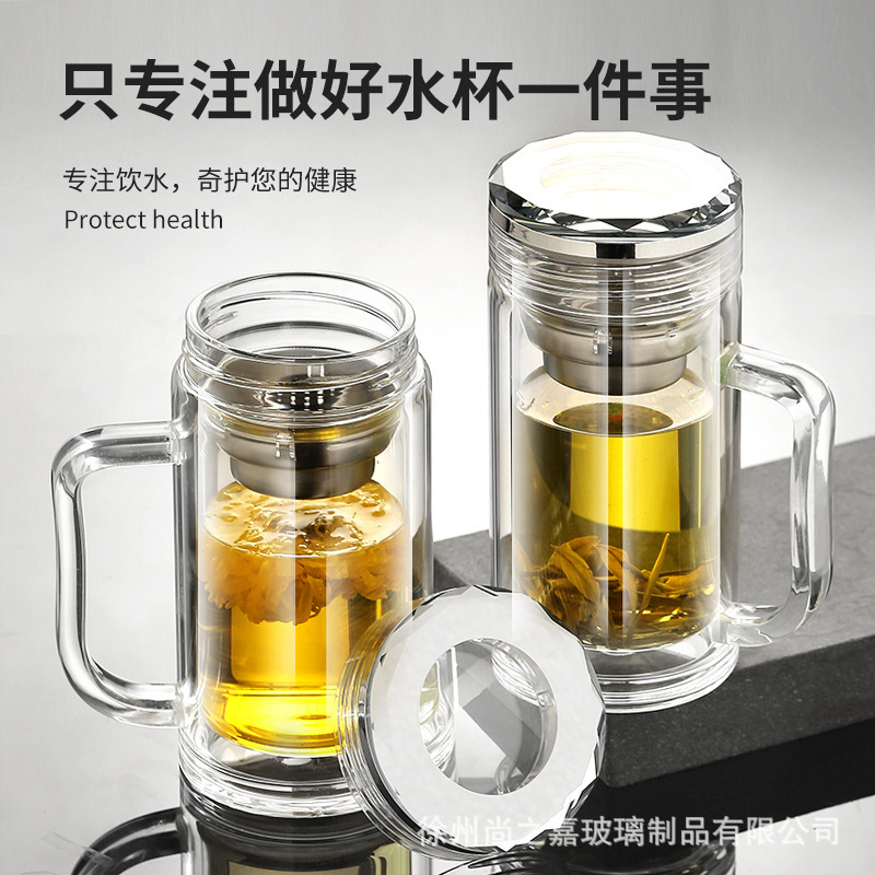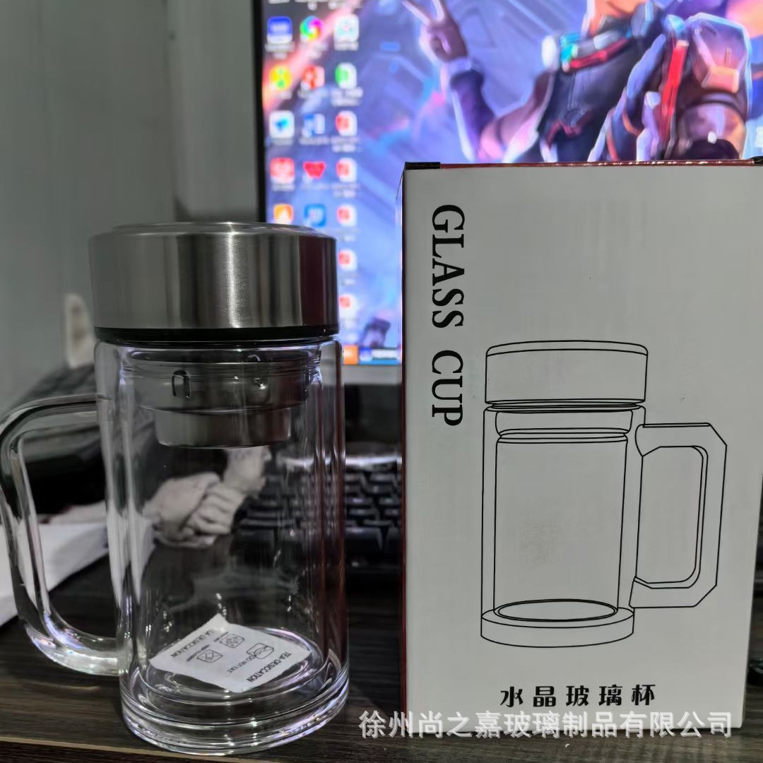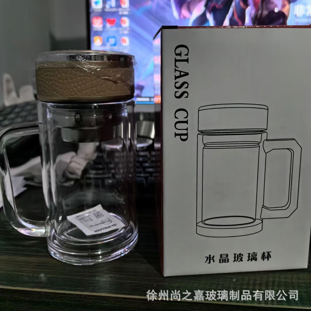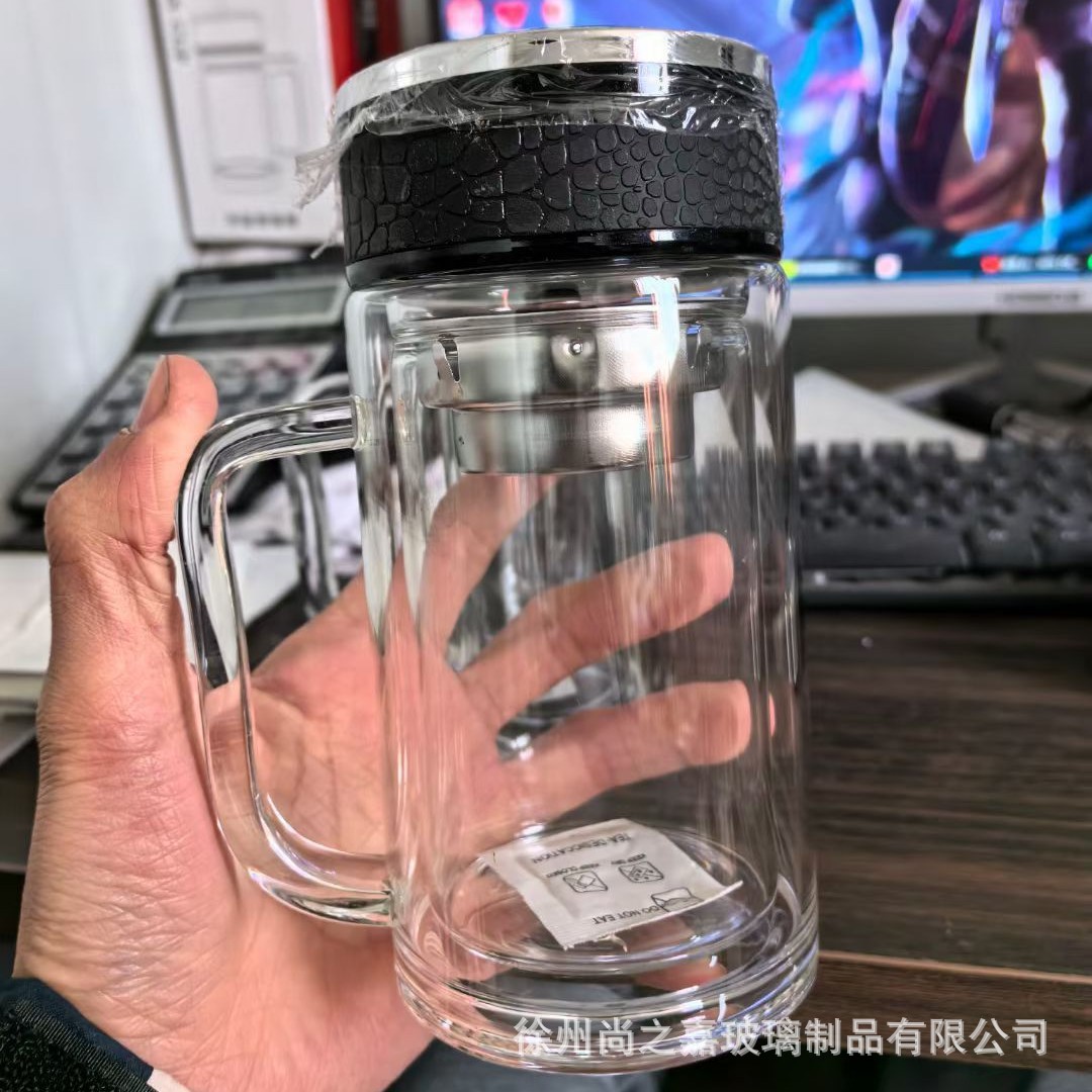 Главная страница > Стеклянный стакан с двойным стеклом с ручкой высокой термостойкости