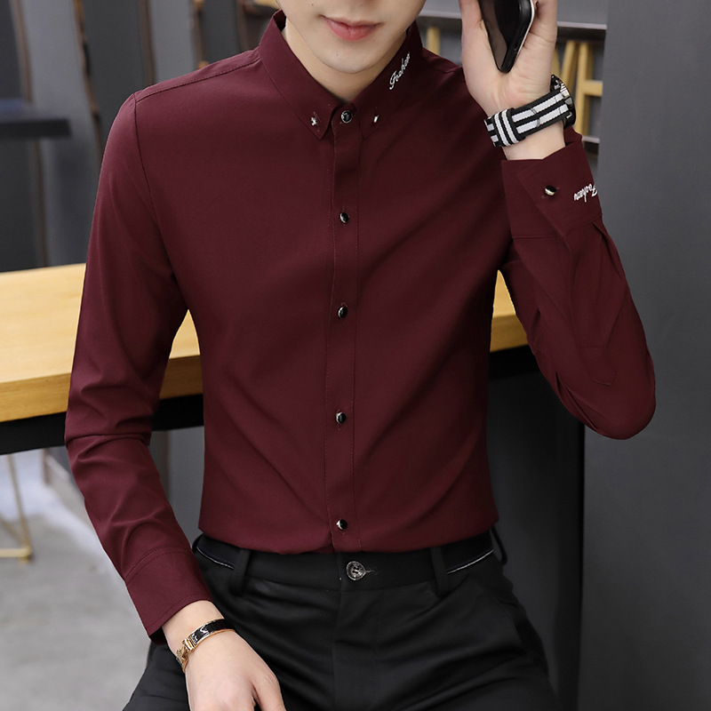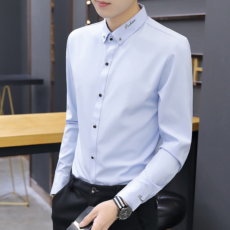 Весной и осенью белые рубашки мужские длинные рукава тонкую корейскую мужскую рубашку деловая повседневная безжгая красивая рубашка