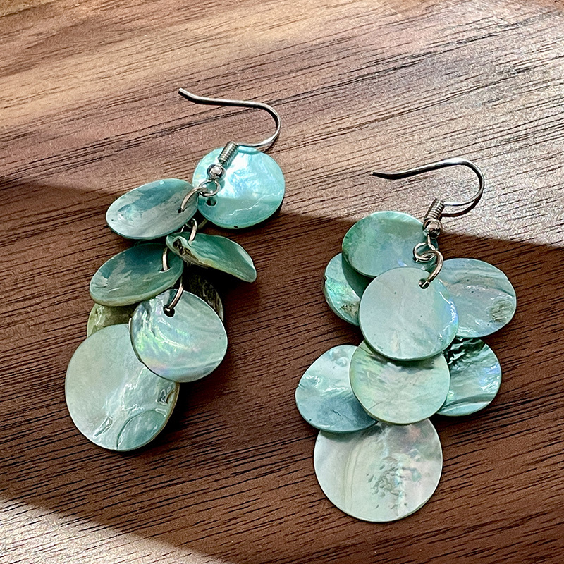 2503367 Серьги с кисточками в форме круглой ракушки, зеленые