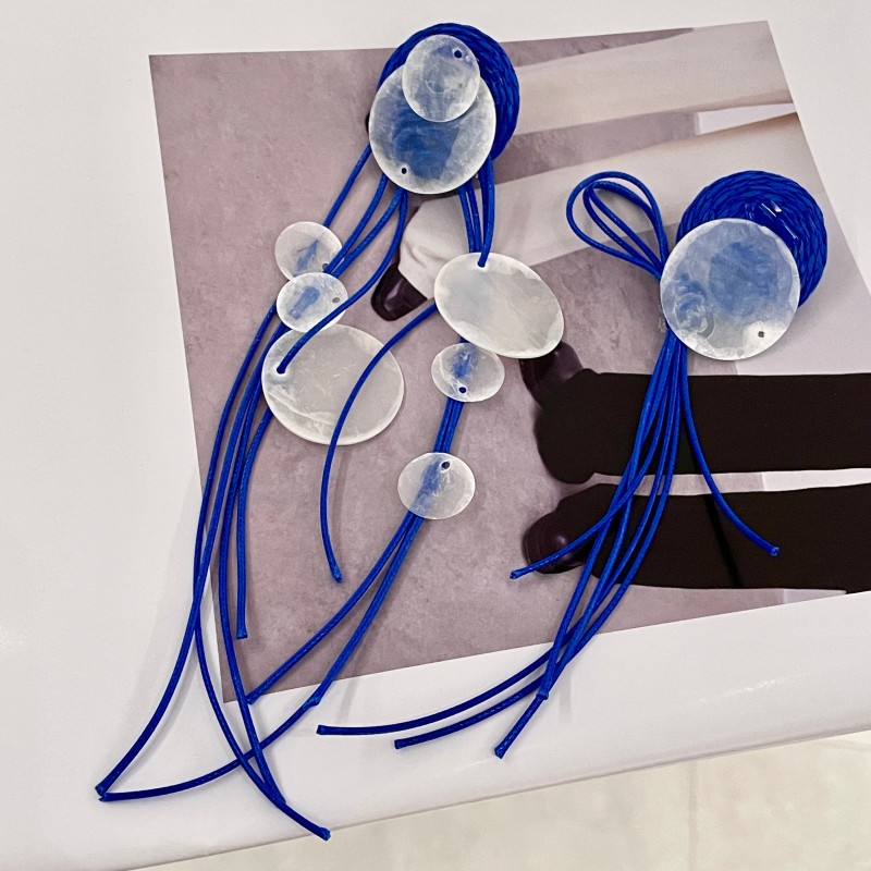 2506026B Серьги с кисточками синего диска (серебряная игла S925)