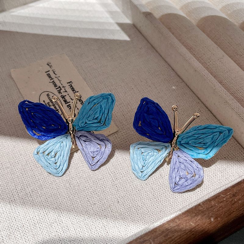 2503068А синяя соломенная бабочка (серебряная игла S925)
