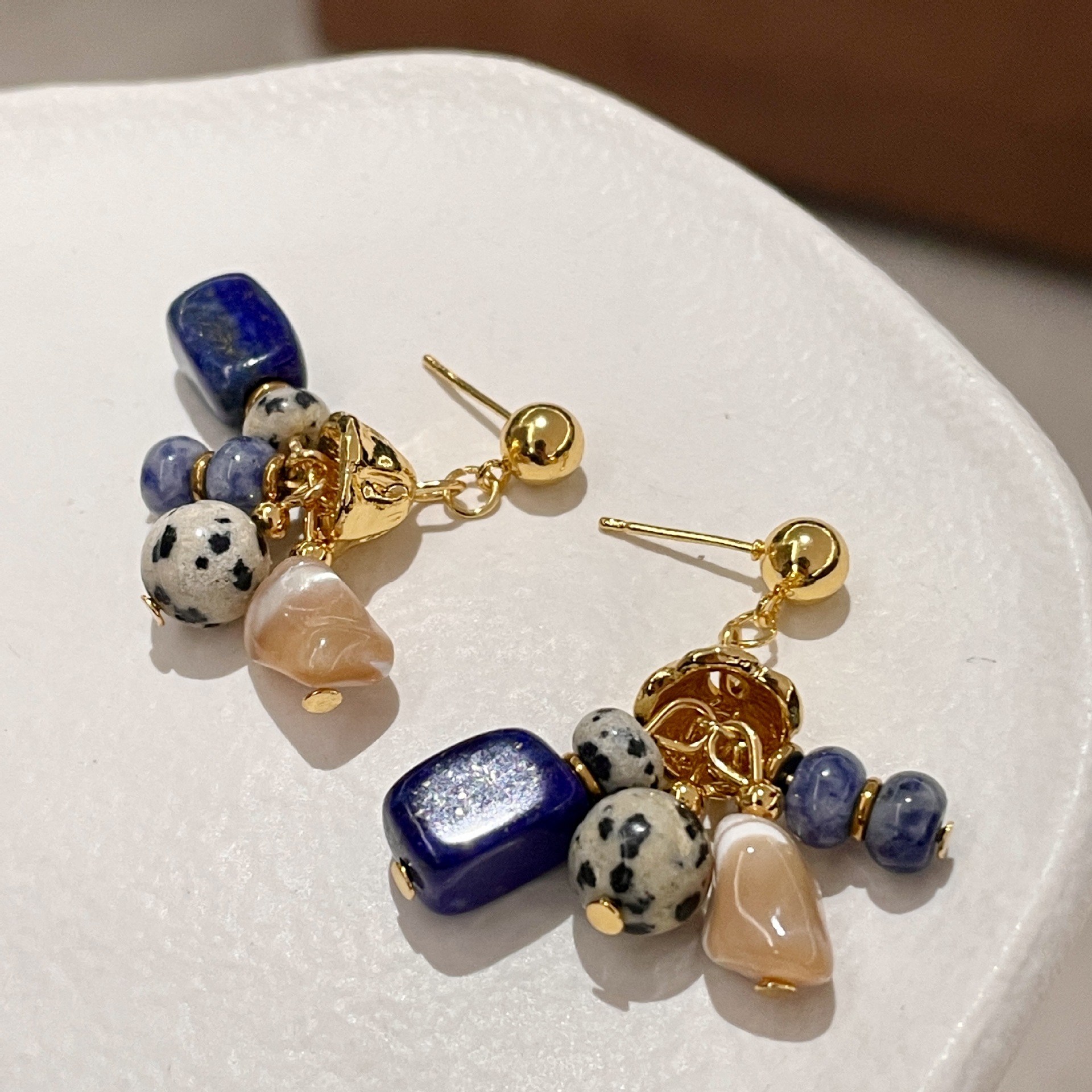 2510100 многокомпонентные серьги-подвески из натурального камня (игла из серебра S925)