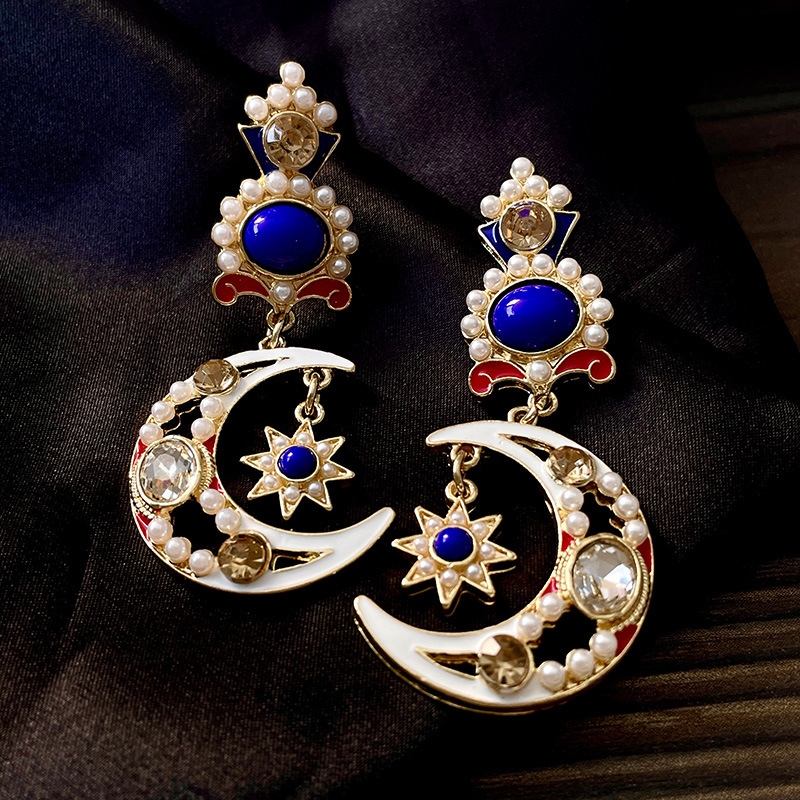 2409127 Серьги с жемчужными сверкающими бриллиантами, красочными звездами и луной (серебряная игла S925)
