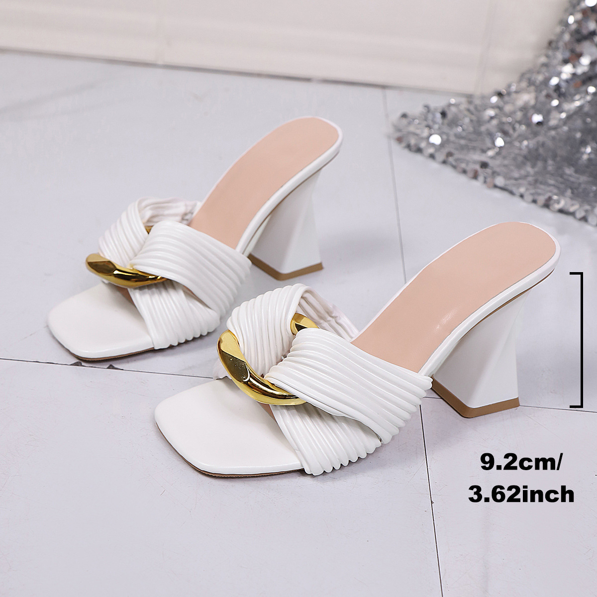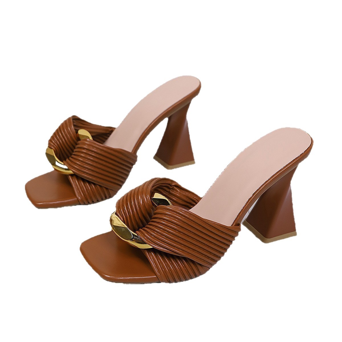 Главная страница > Элегантные туфли на высоком каблуке с квадратным носком больших размеров 2025, толстый каблук, металлическая пряжка, европейские и американские сексуальные летние новые экспортируемые сандалии и тапочки для женщин