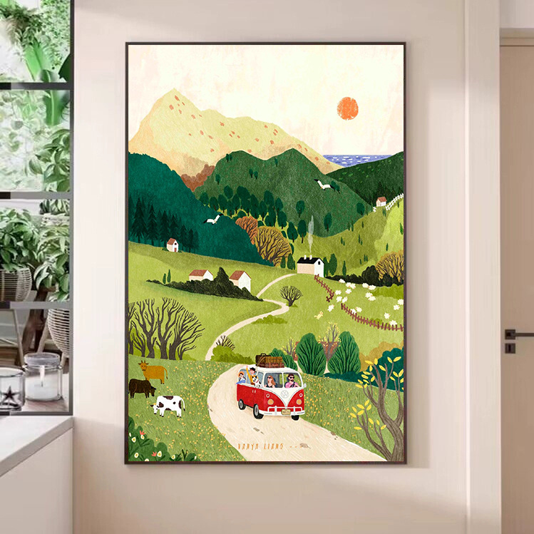 Главная страница > Весенний прогулочный, теплый, свежий, зеленый пасторальный пейзаж, декоративная живопись, гостиная, столовая, детская комната, подвесная картина