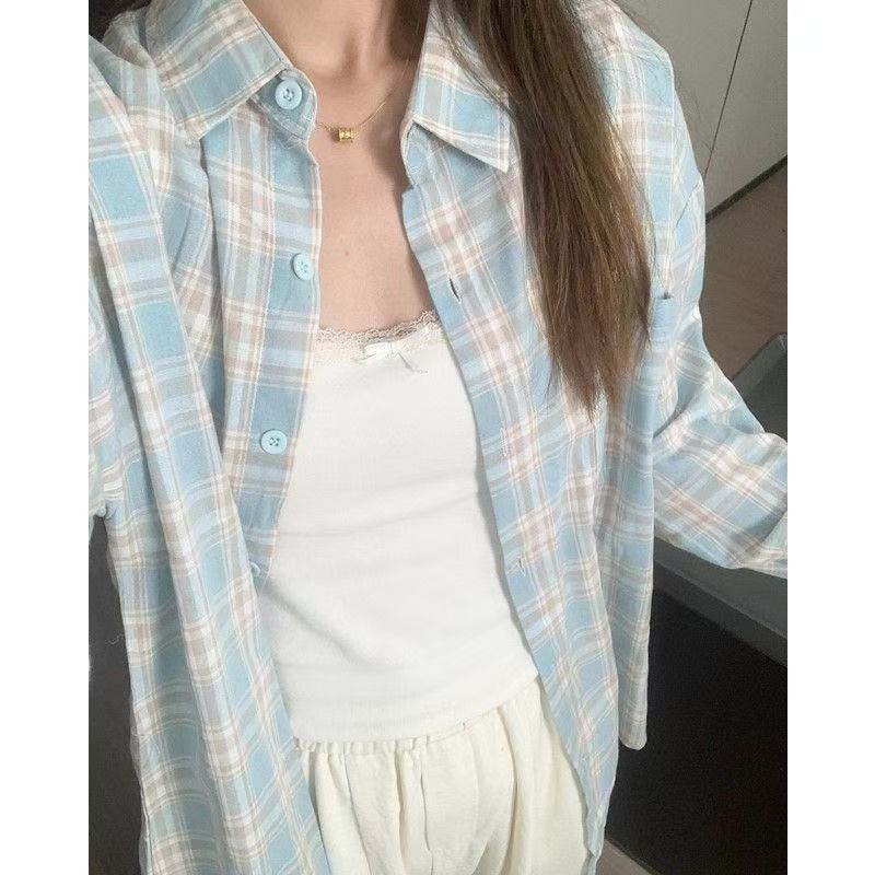 Весенне-летняя новая клетчатая рубашка, женский свободный топ, утягивающий солнцезащитный кардиган, клетчатая рубашка с длинными рукавами, закрывающая тело