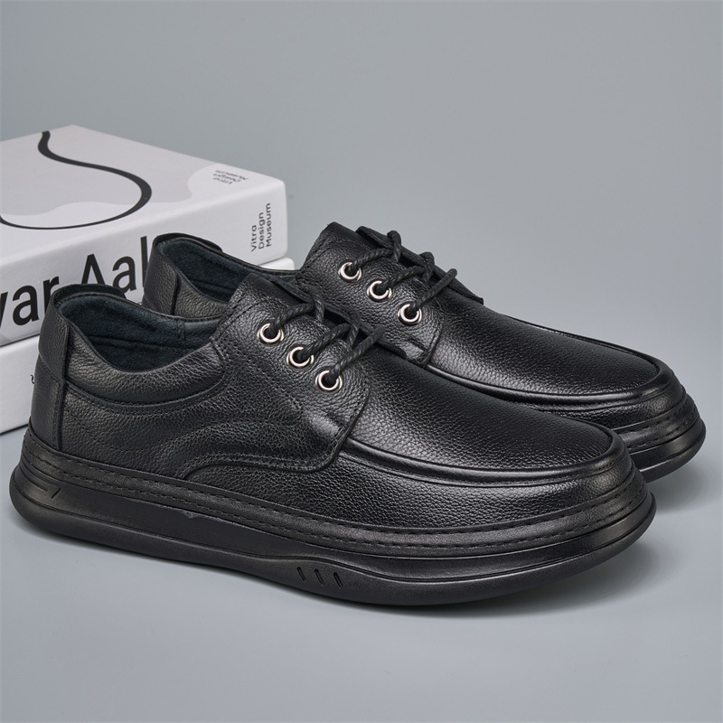 Мужские кожаные туфли весной и осенью кожаные удобные повседневные туфли мужские туфли толстые ноги широкие туфли чистые кожаные туфли на открытом воздухе мягкие