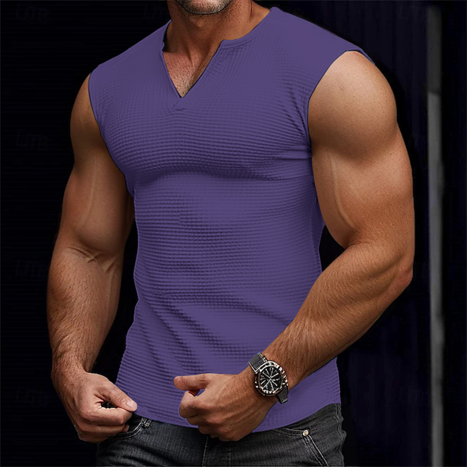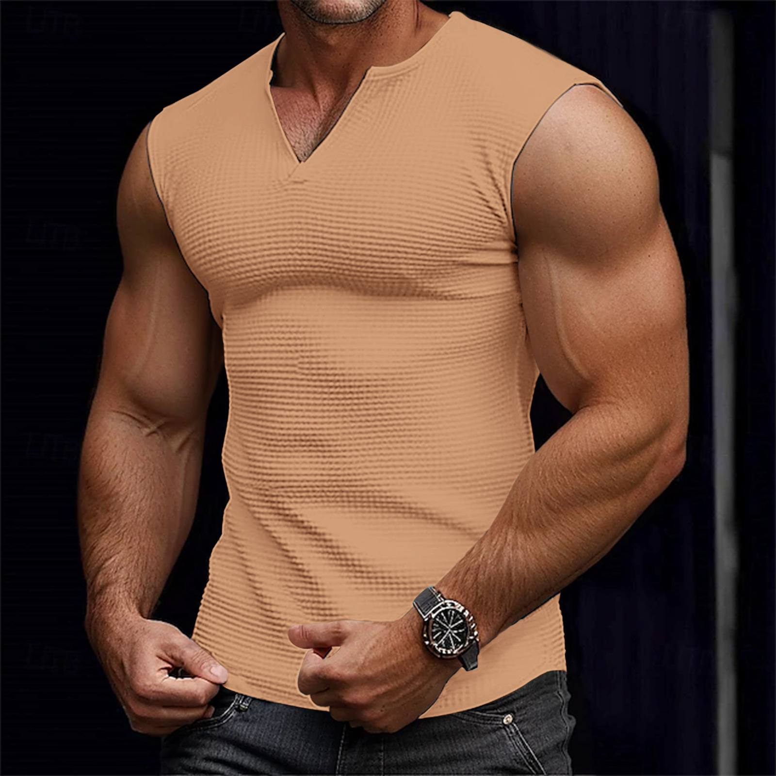 Главная страница > Летний мужской вафельный жилет-майка без рукавов с принтом, однотонный, V-образный вырез, уличный повседневный жилет без рукавов 2025