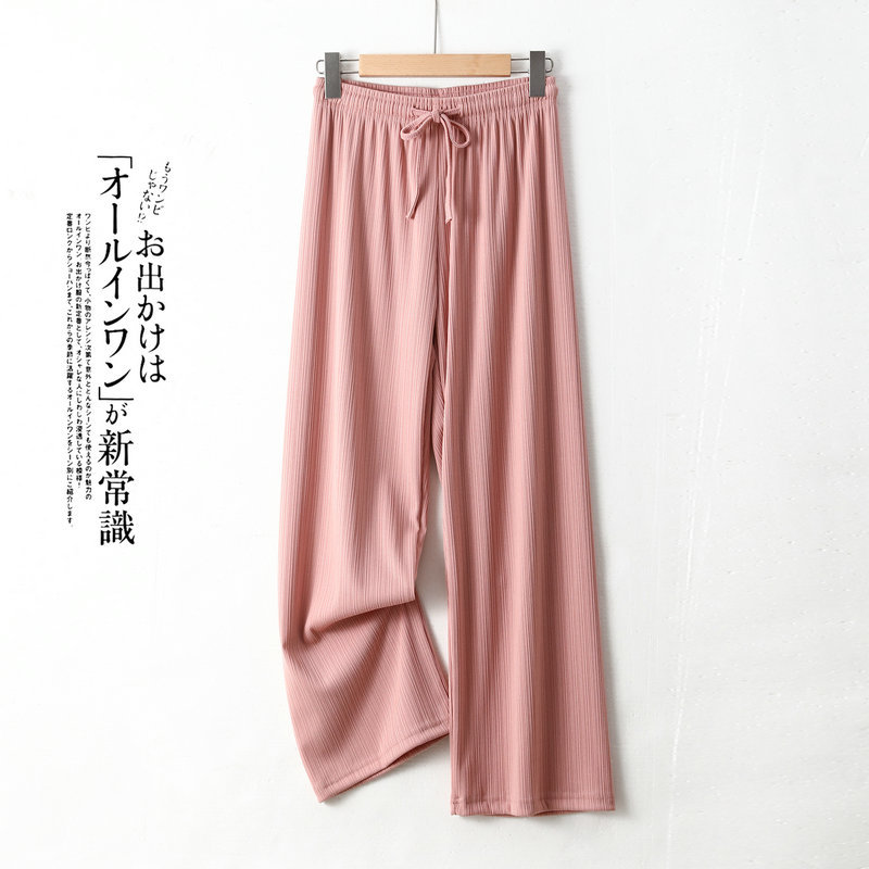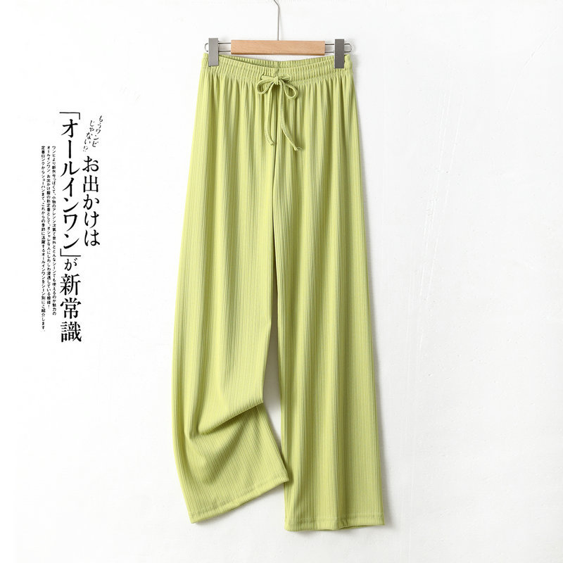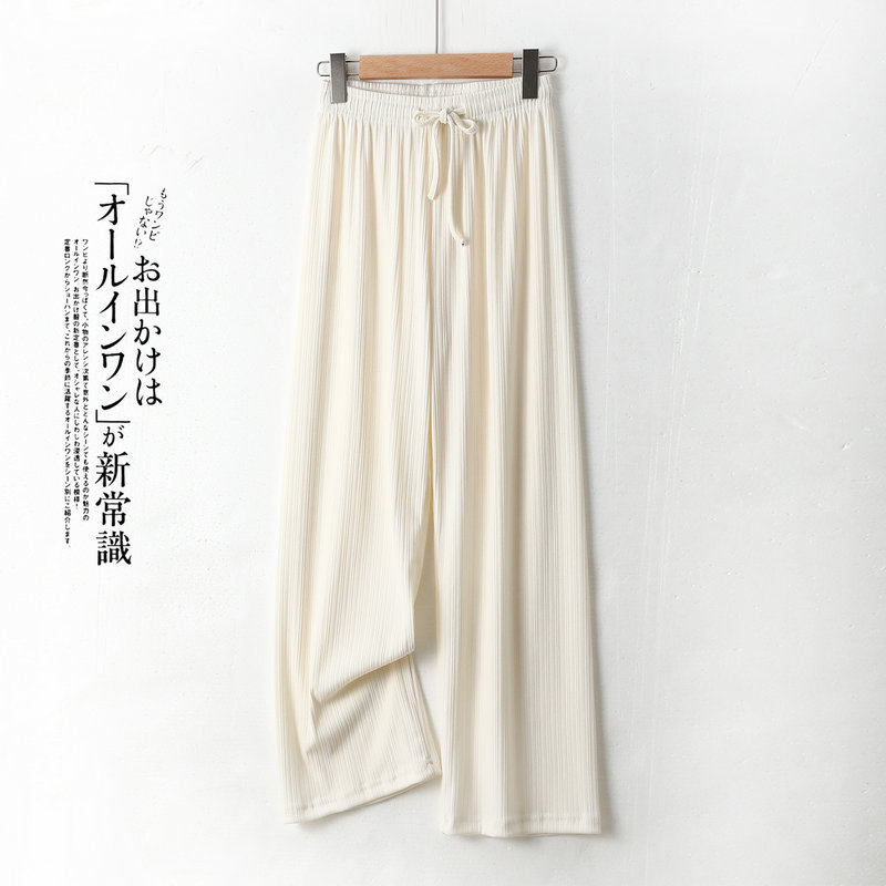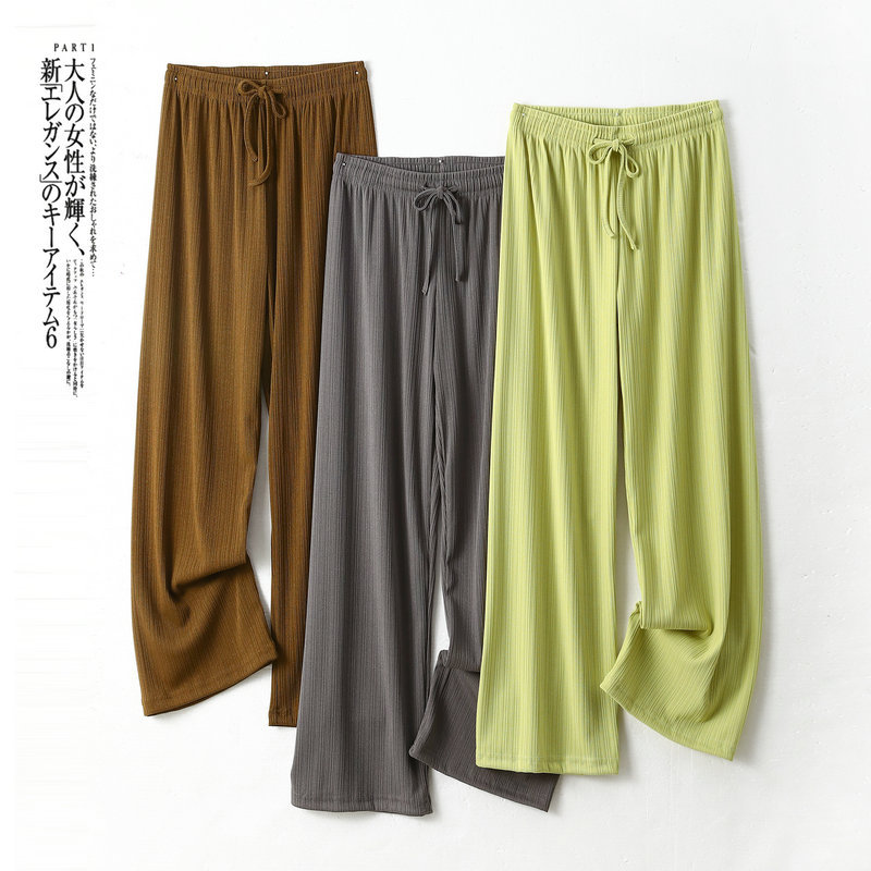 Главная страница > Маленькие широкие брюки из ледяного шелка, женские летние тонкие прямые штаны с высокой талией, стройнящие, весенне-Летние Плиссированные повседневные брюки без пола