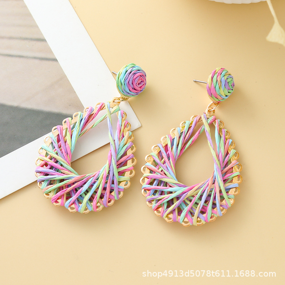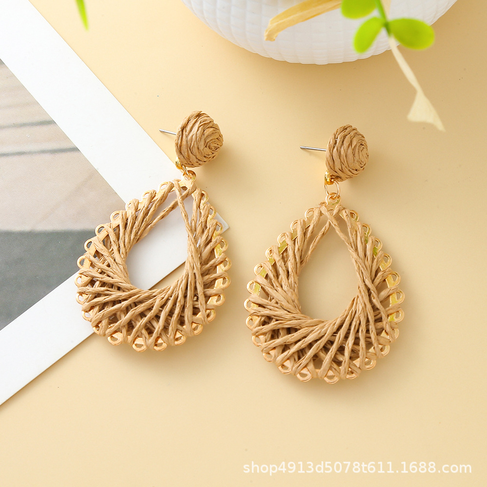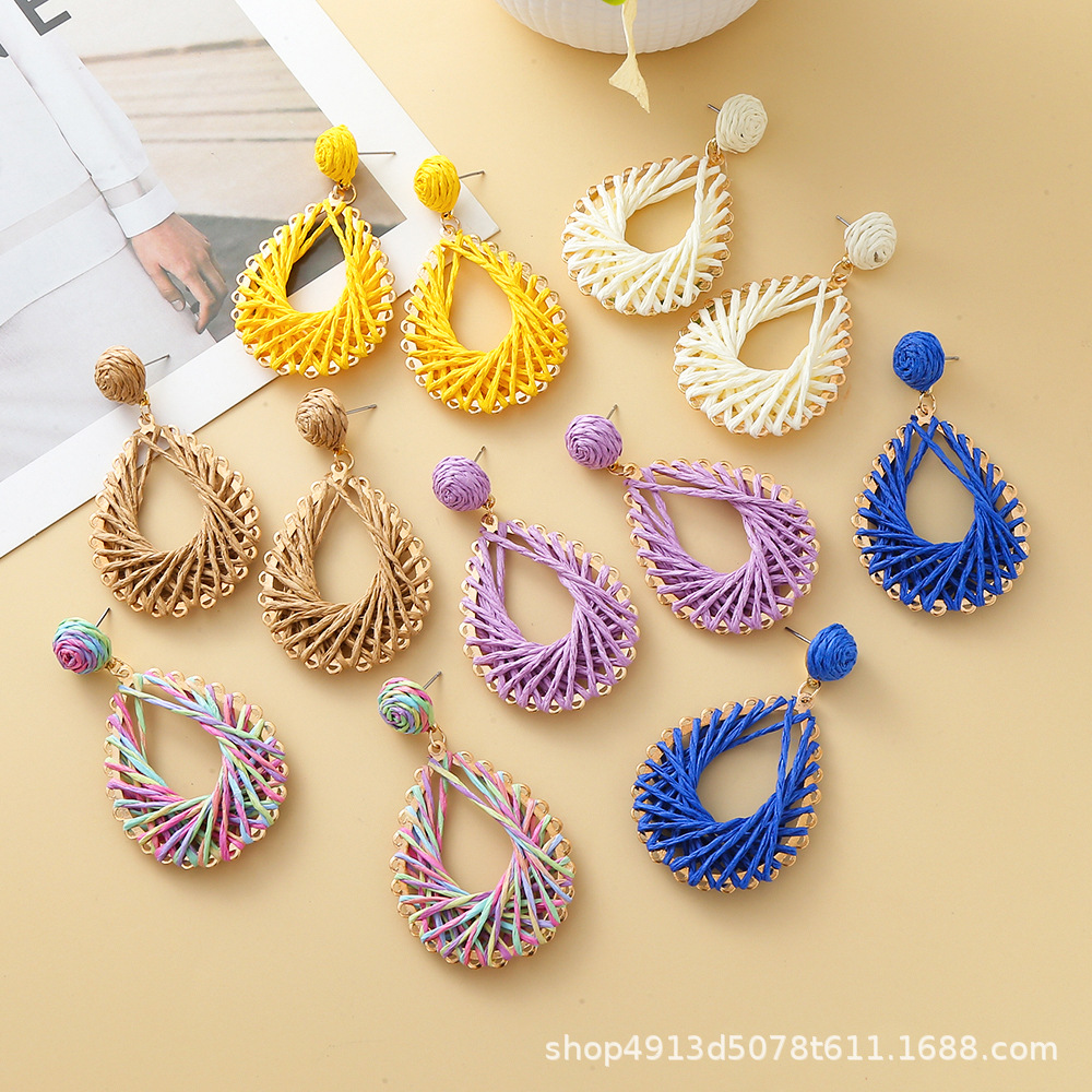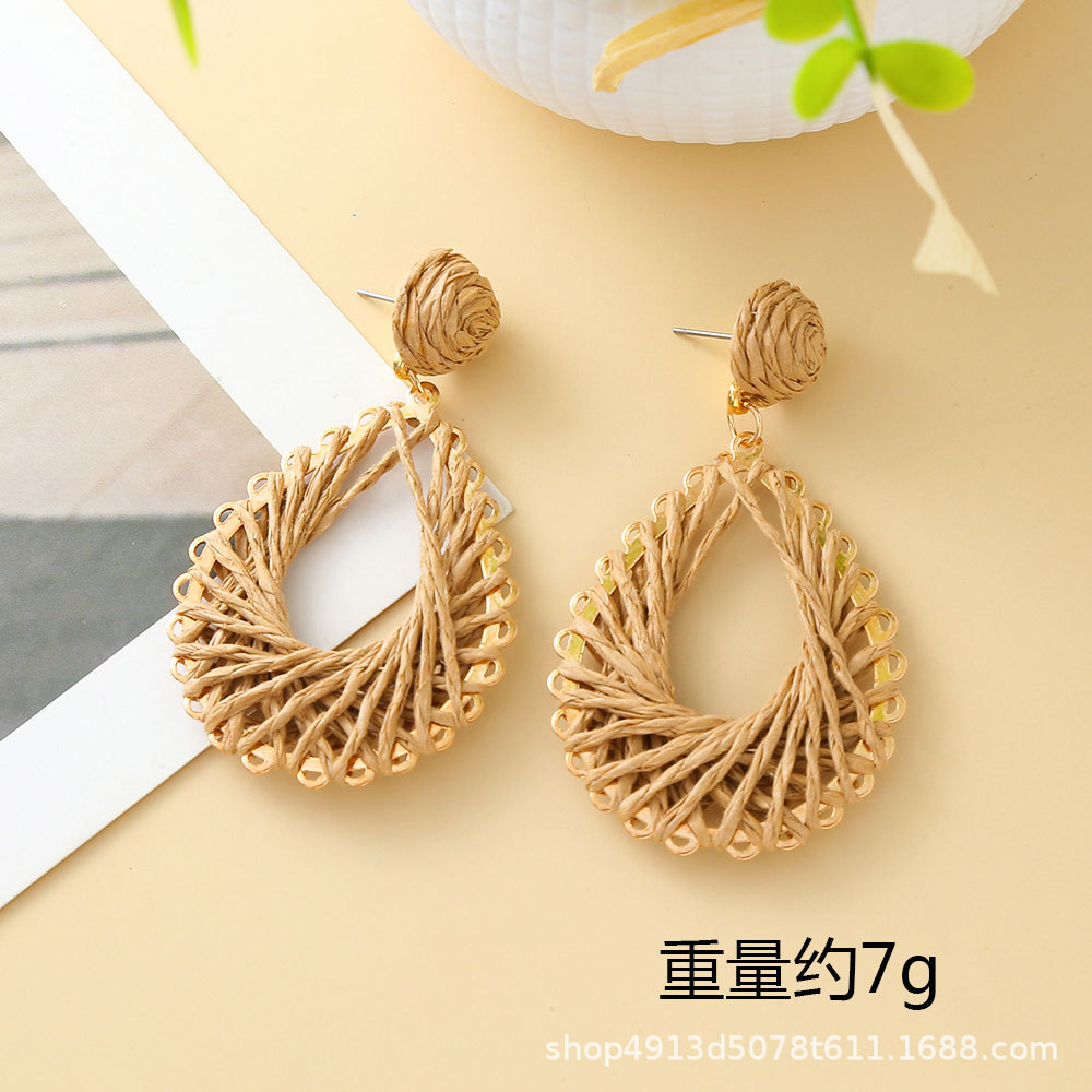 Главная страница > Трансграничные богемные серьги из рафии для женщин, стиль для путешествий и отпуска, преувеличенные серьги из ротанга ручной работы, модные
