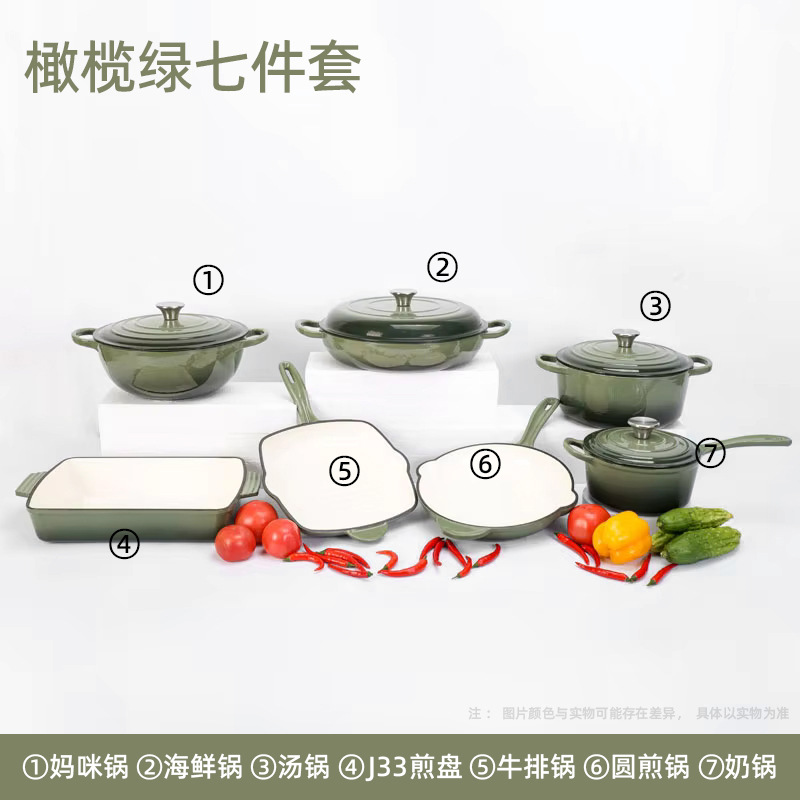 Главная страница > Специальная трансграничная поставка чугунного эмалированного горшка, набор из семи предметов, сковорода, сковорода, кастрюля для тушения, кастрюля для морепродуктов, кастрюля для мамы, набор эмалированных кастрюль