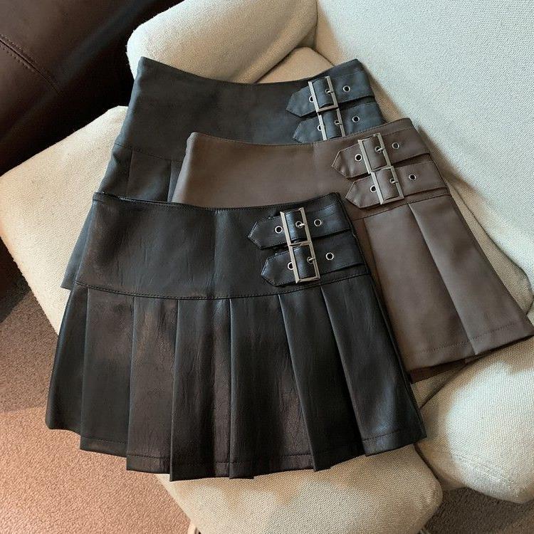 Главная страница > Маленькая кожаная юбка цвета карри женская 2024 осень новая высокая талия тонкая складка юбка стильная юбка ПУ юбка
