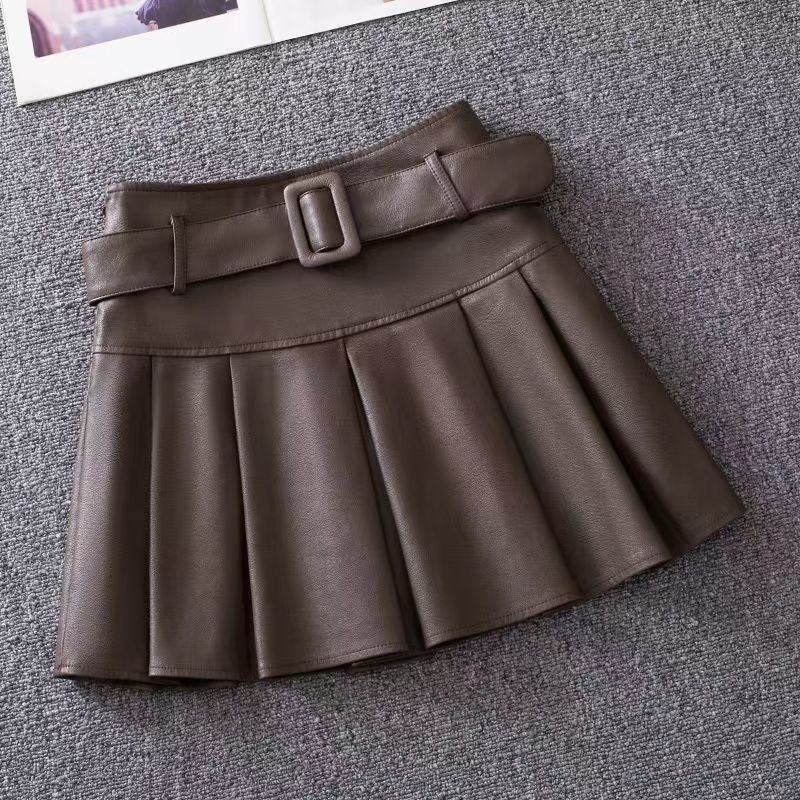 Маленькая кожаная юбка цвета карри женская 2024 осень новая высокая талия тонкая складка юбка стильная юбка ПУ юбка