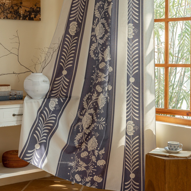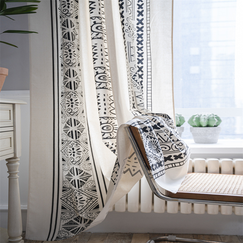Изготовленная на заказ черная геометрическая занавеска с закатанным краем и крючком