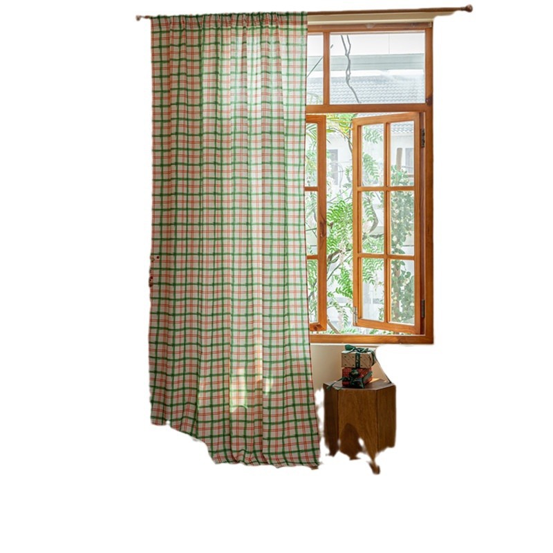 Главная страница > Le Xuanxiu Nordic новый стиль ветра красная и зеленая линия в клетку без пробивки полузатемняющие балконные шторы в спальне