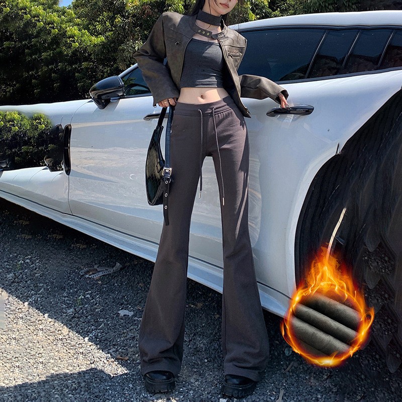 Главная страница > Расклешенные женские спортивные штаны, зимние на флисовой подкладке, в стиле Lulu, с заниженной талией, утягивающие, повседневные брюки-клеш длиной до пола для йоги.