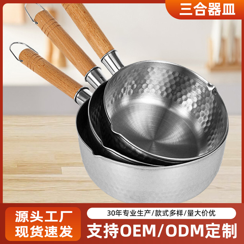 430 Нержавеющая сталь Снежная Сковорода в японском стиле Утолщенная детская горшок с плоским дном для дополнительного питания Горшок для супа с лапшой Многофункциональный горшок для молока с одной ручкой
