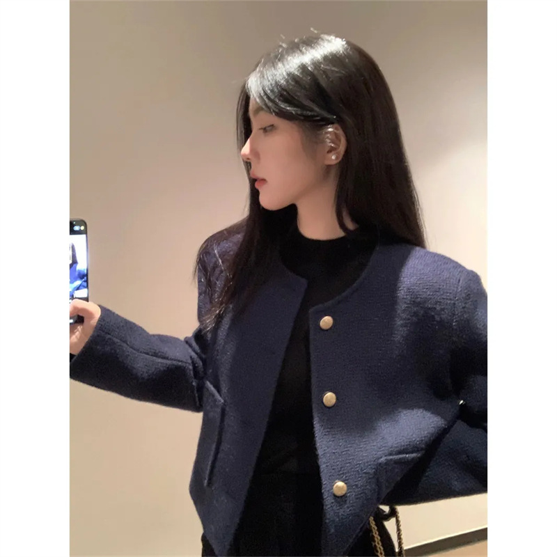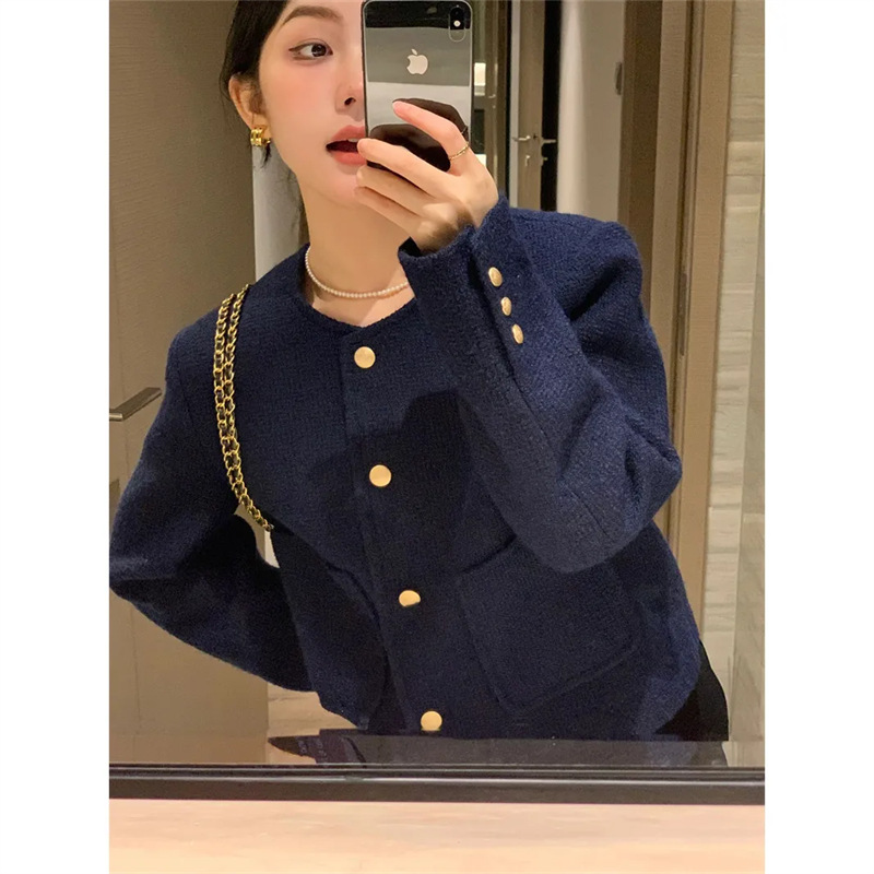 Супер красивый синий маленький ароматный короткий пиджак нишевый упорядоченный дизайн куртка женская корейская версия этой осенью и зимой