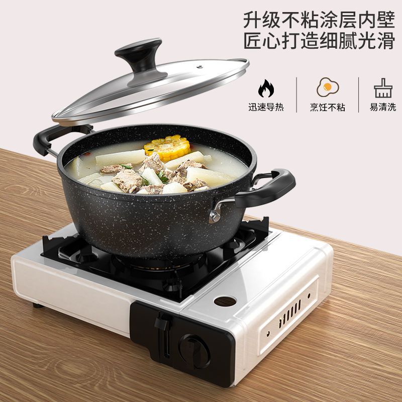 Кастрюля для супа из камня Maifan, кастрюля с антипригарным покрытием, пароварка, кастрюля для тушения, бытовая кастрюля для приготовления супа, кастрюля для варки супа с двумя ручками, совместимая с газовыми и индукционными плитами.