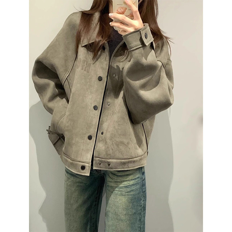 Главная страница > Короткая замшевая куртка в американском стиле ретро для женщин, весна и осень 2024, новый стиль, свободная куртка в ленивом нейтральном стиле, топ