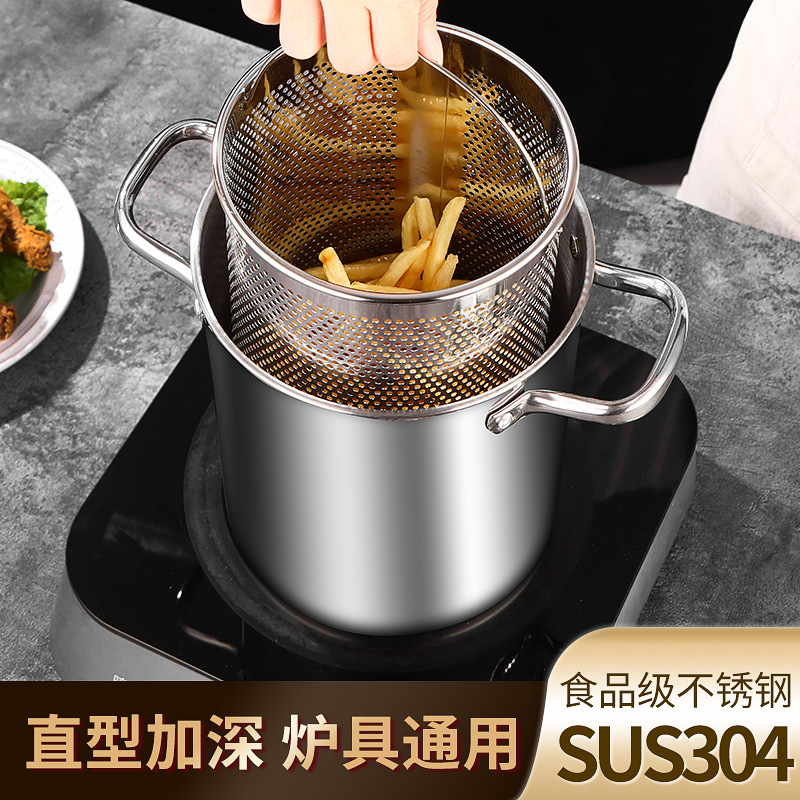 Главная страница > 304 немаслянистая ржавчина стальной горшок для глубокой фритюрницы большой емкости с фильтром для экономии масла Многофункциональная фритюрница