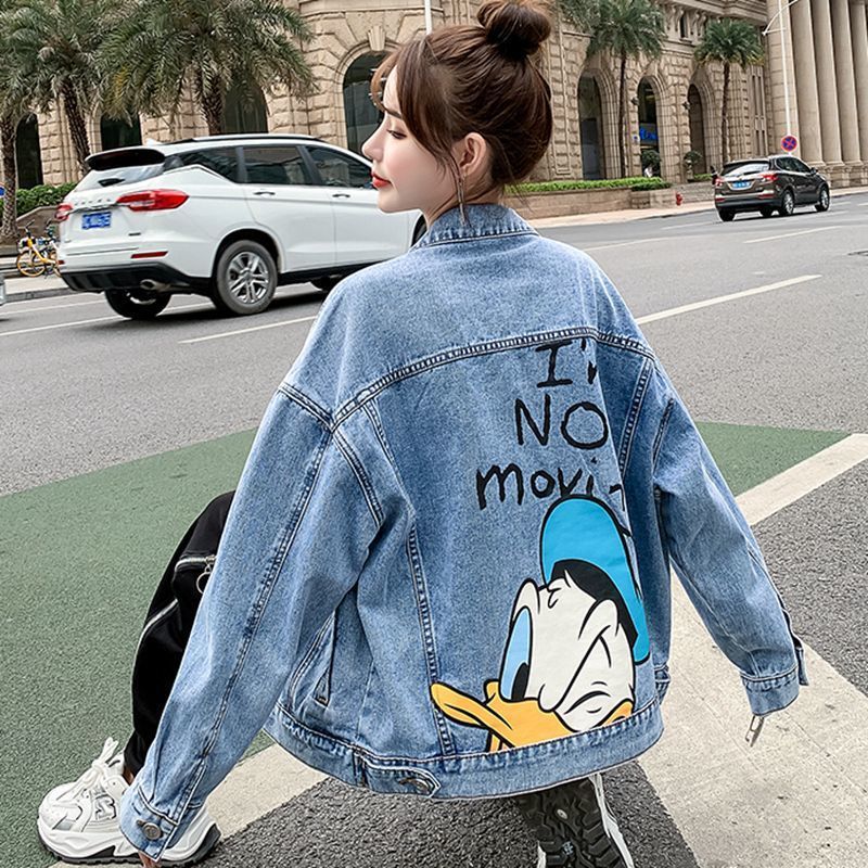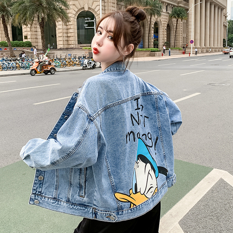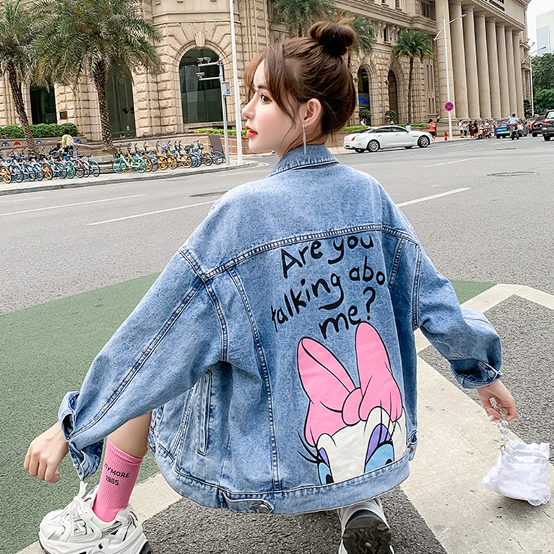 Главная страница > Джинсовая куртка большого размера женская весна и осень 2025 новая корейская версия свободного мультяшного принта повседневная куртка топ