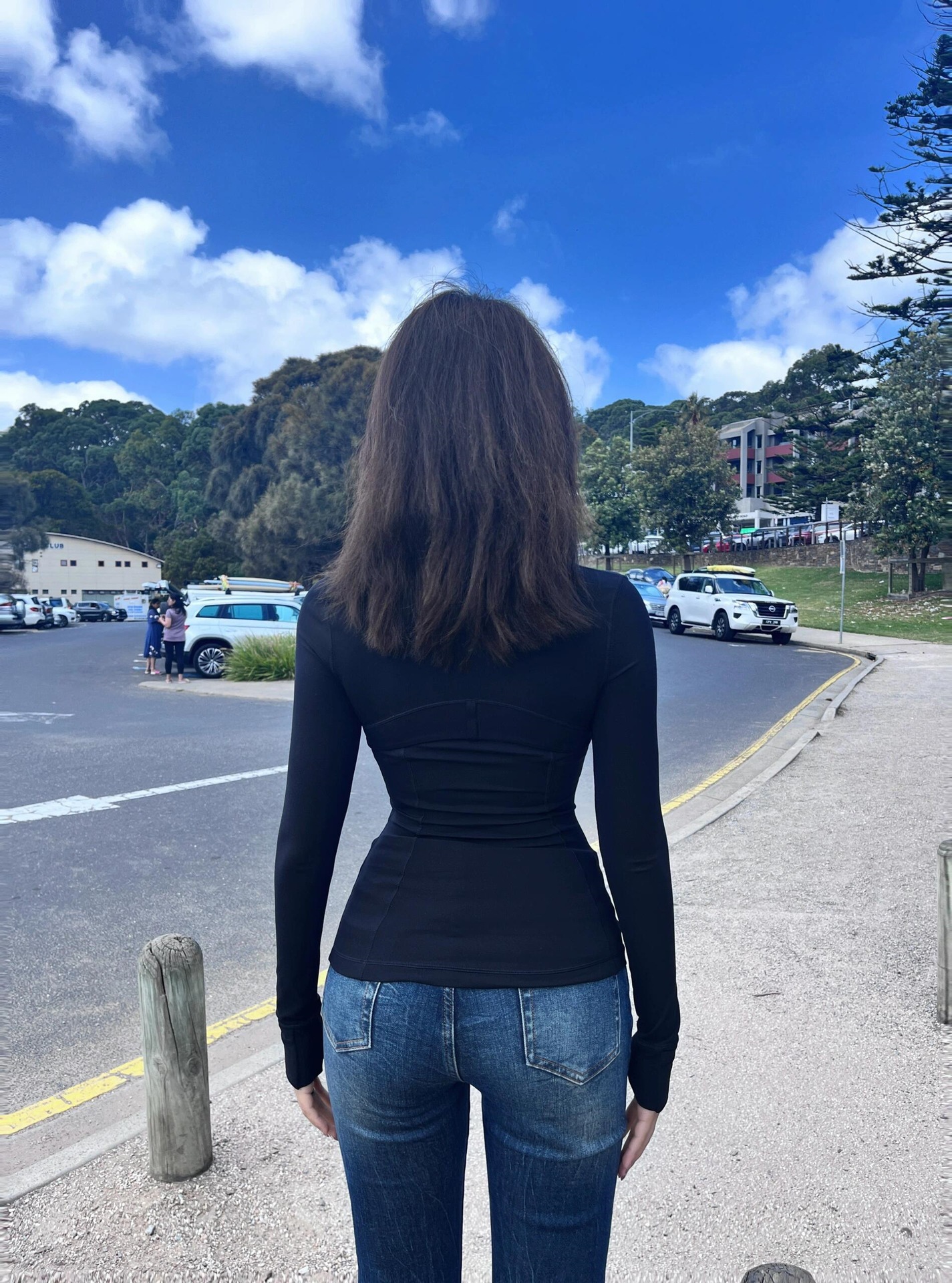 Спортивная куртка Lulu Fend для женщин, осенний топ для йоги со воротником-стойкой, с эффектом утягивания талии, дышащая, удобная для фитнеса.