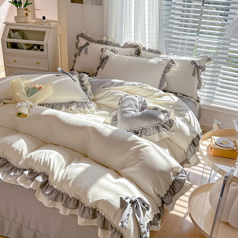 Главная страница > K15 Корейский стиль, стираный хлопок, четырехсекционный пододеяльник в стиле принцессы, двухслойная марля, кружево, сердце для девочек, домашняя кровать, простыни, комплект из трех предметов