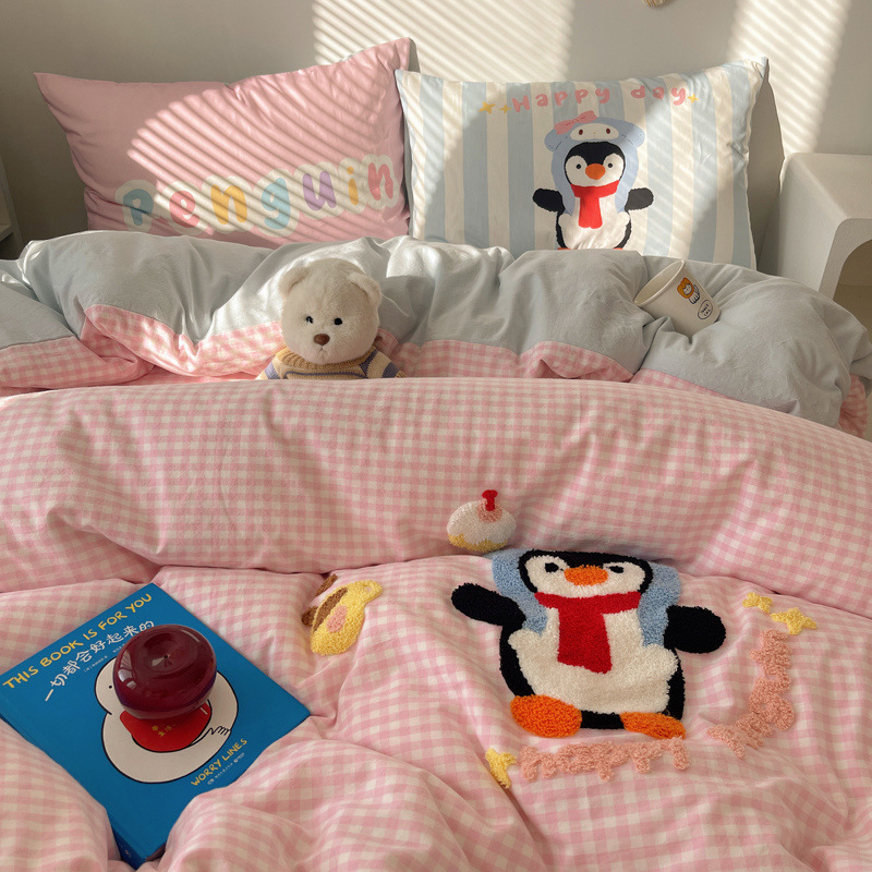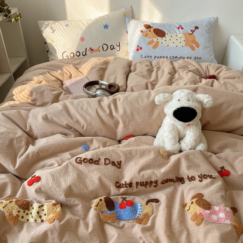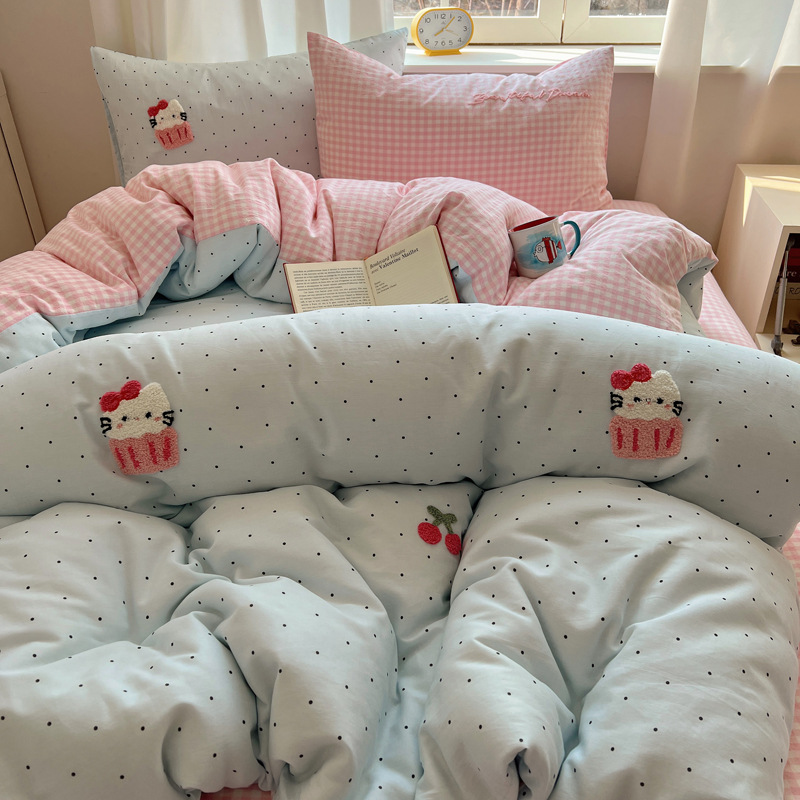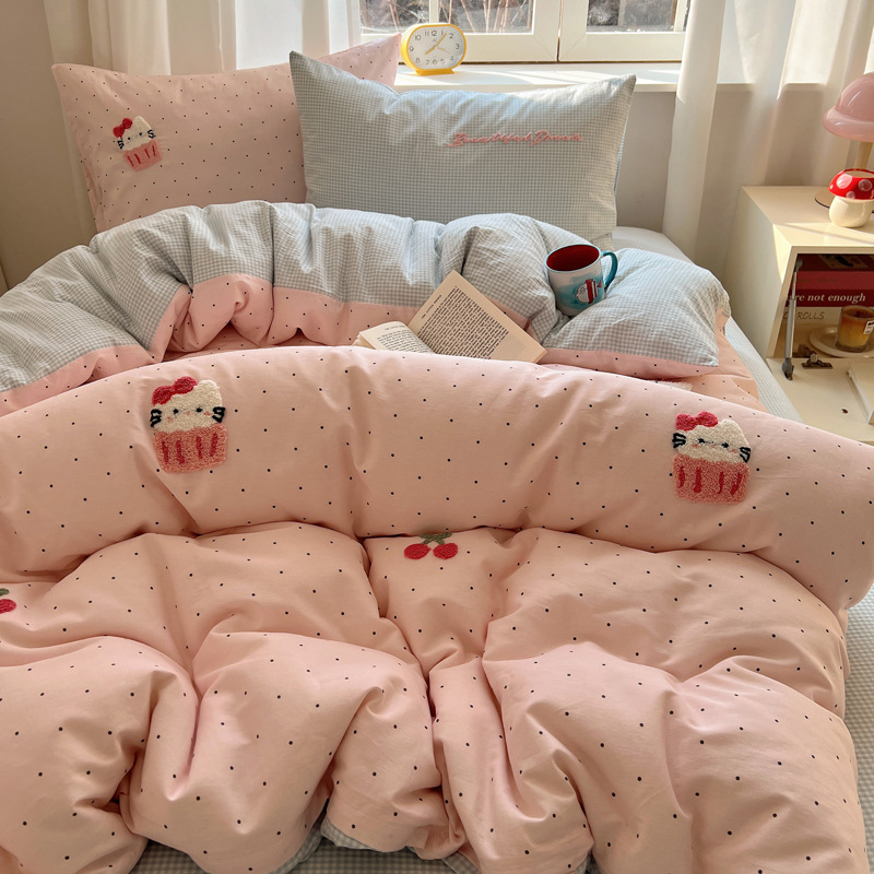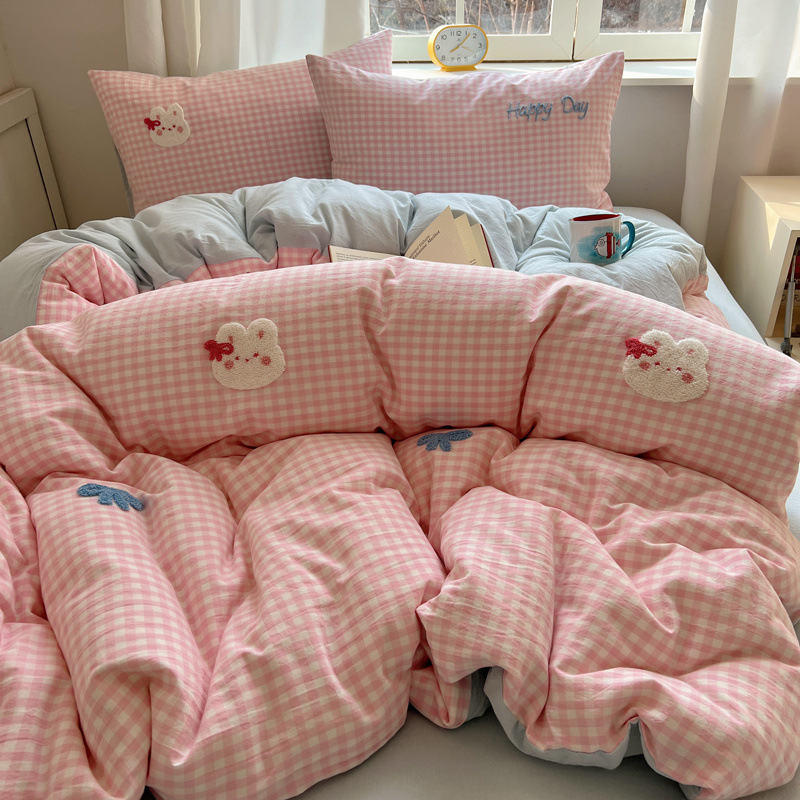 Главная страница > Комплект постельного белья из чистого хлопка класса А, четыре предмета: простыня, пододеяльник, натяжная простыня, в стиле Ins, из стираного хлопка, приятный для кожи.