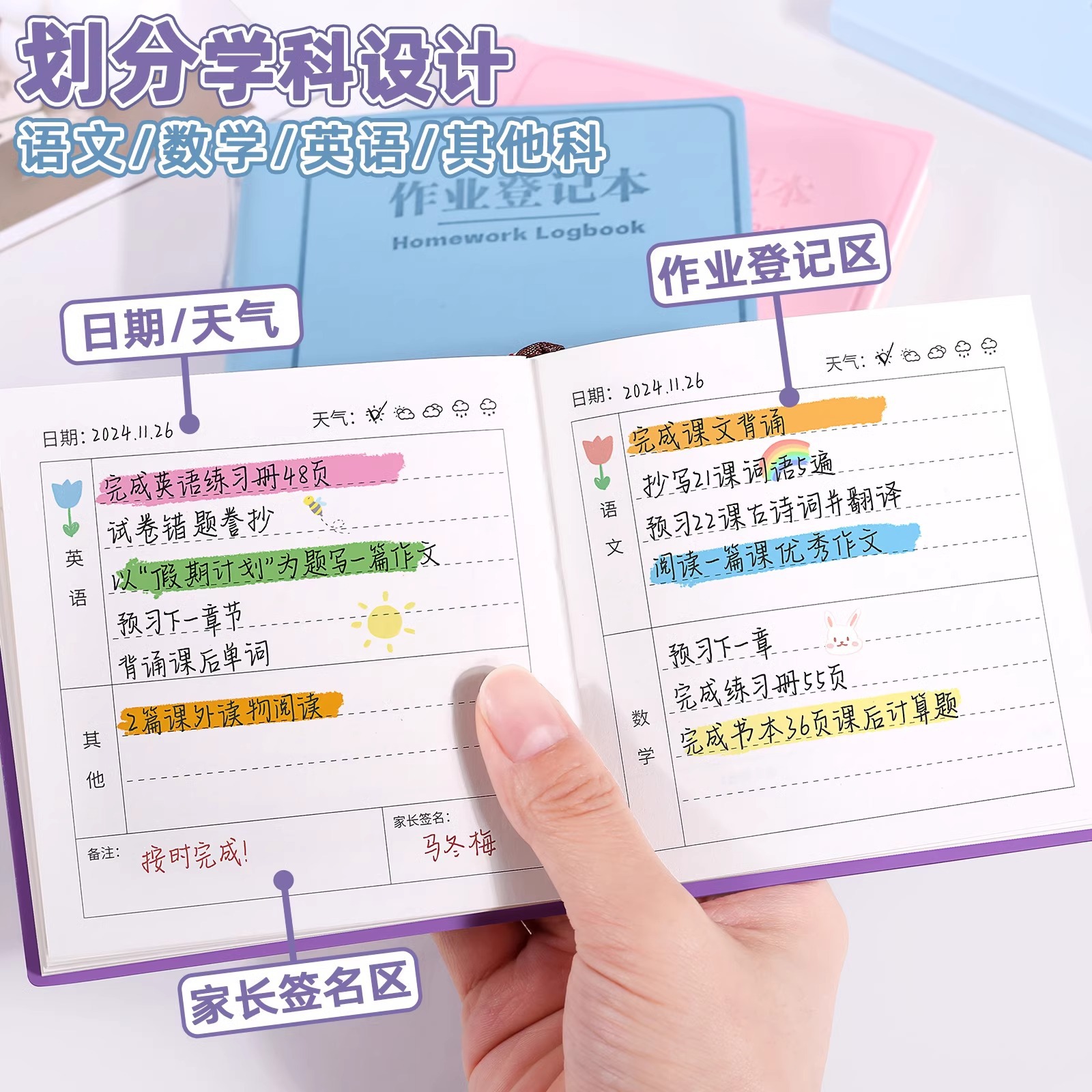 [Улучшенное гнездо для ручки — бесплатная портативная ручка] Книга для регистрации домашних заданий — розовая (96 листов/книга)