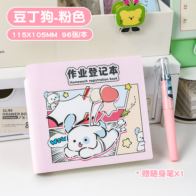 [Улучшенное гнездо для ручки — бесплатная портативная ручка] Книга для регистрации домашних заданий — Dingdou Dog — Розовый (96 листов/книга)