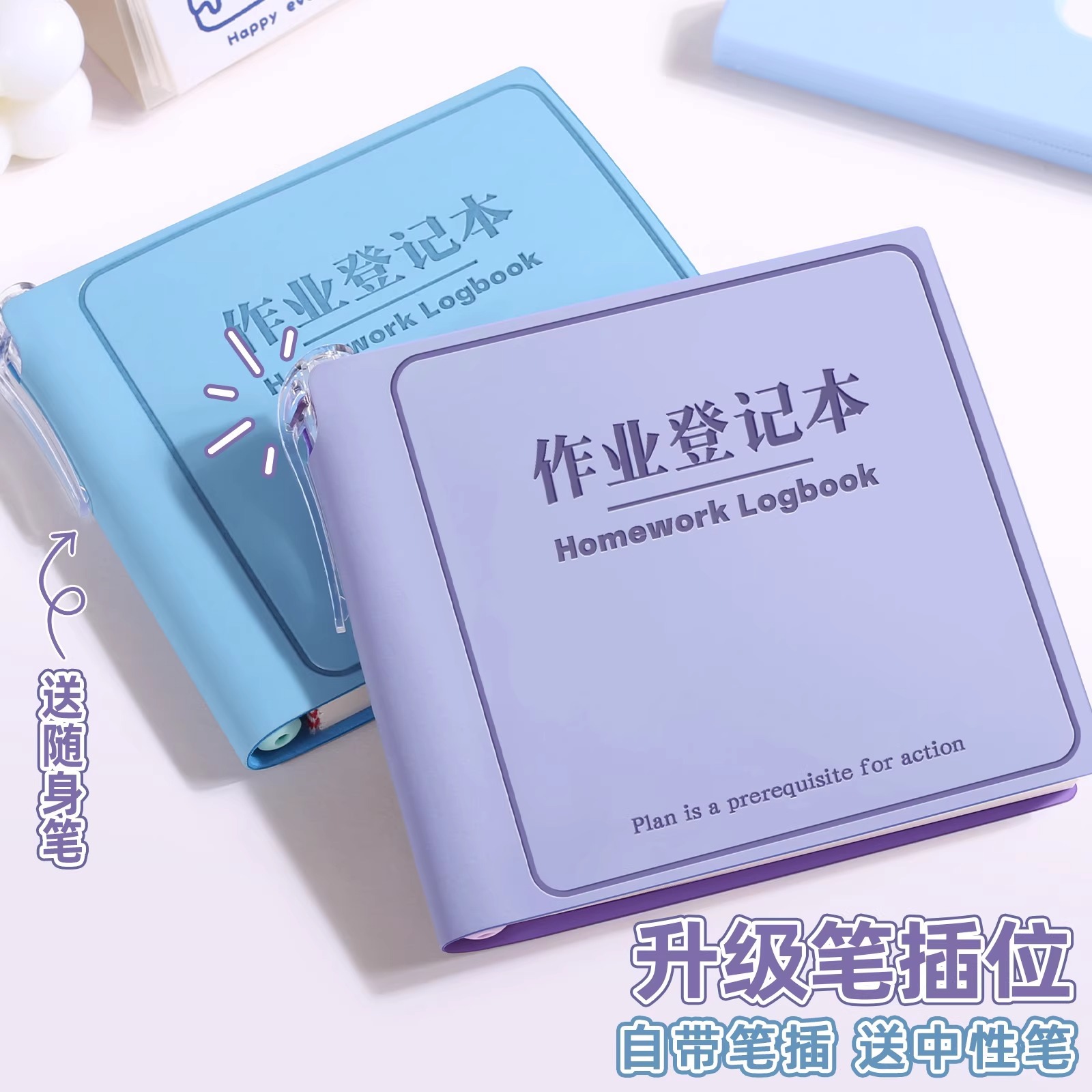 [Улучшенное гнездо для ручки — бесплатная портативная ручка] Книга для регистрации домашних заданий — фиолетовая (96 листов/книга)