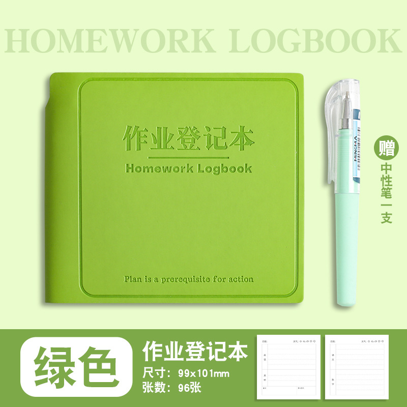 [Улучшенное гнездо для ручки — бесплатная портативная ручка] Книга для регистрации домашних заданий — зеленая (96 листов/книга)