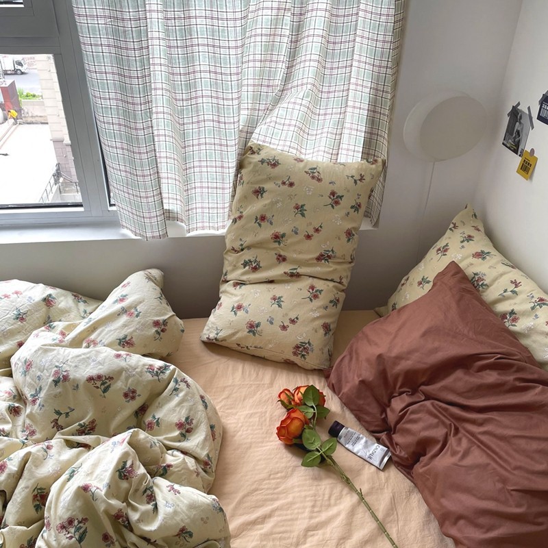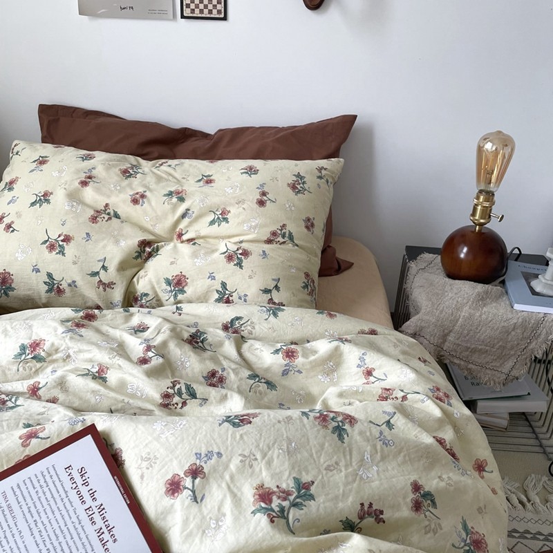 Главная страница > Комплект из четырех предметов из винтажного кремового хлопка с цветочным принтом, сочетающийся с Хлопковой Простыней в пасторальном стиле, пододеяльник, постельное белье для четырех сезонов