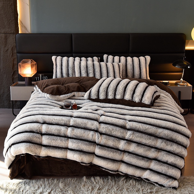 Главная страница > Новый кролик-кролик бархат набор из четырех частей имитация меха утолщенный молочный бархат осенние зимние простыни одеяло теплая набор из трех частей оптом