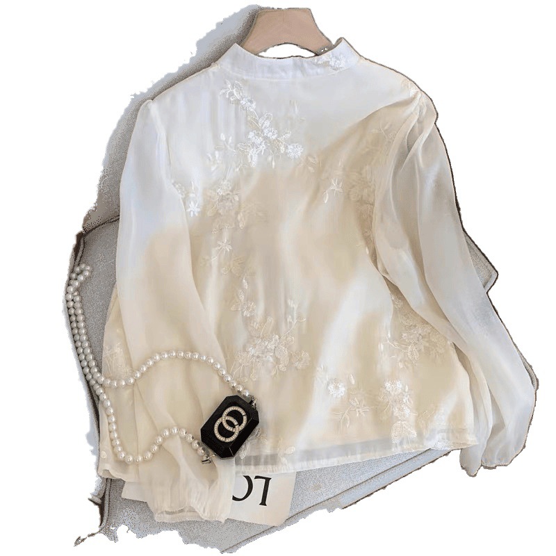 Главная страница > Женская рубашка из сетчатой ткани с вышивкой в китайском стиле, весенняя новая элегантная юбка в китайском стиле с воротником-стойкой на пуговицах в китайском стиле, топ с лошадиным лицом