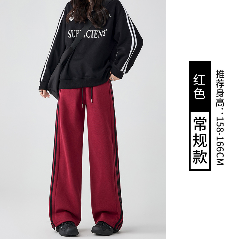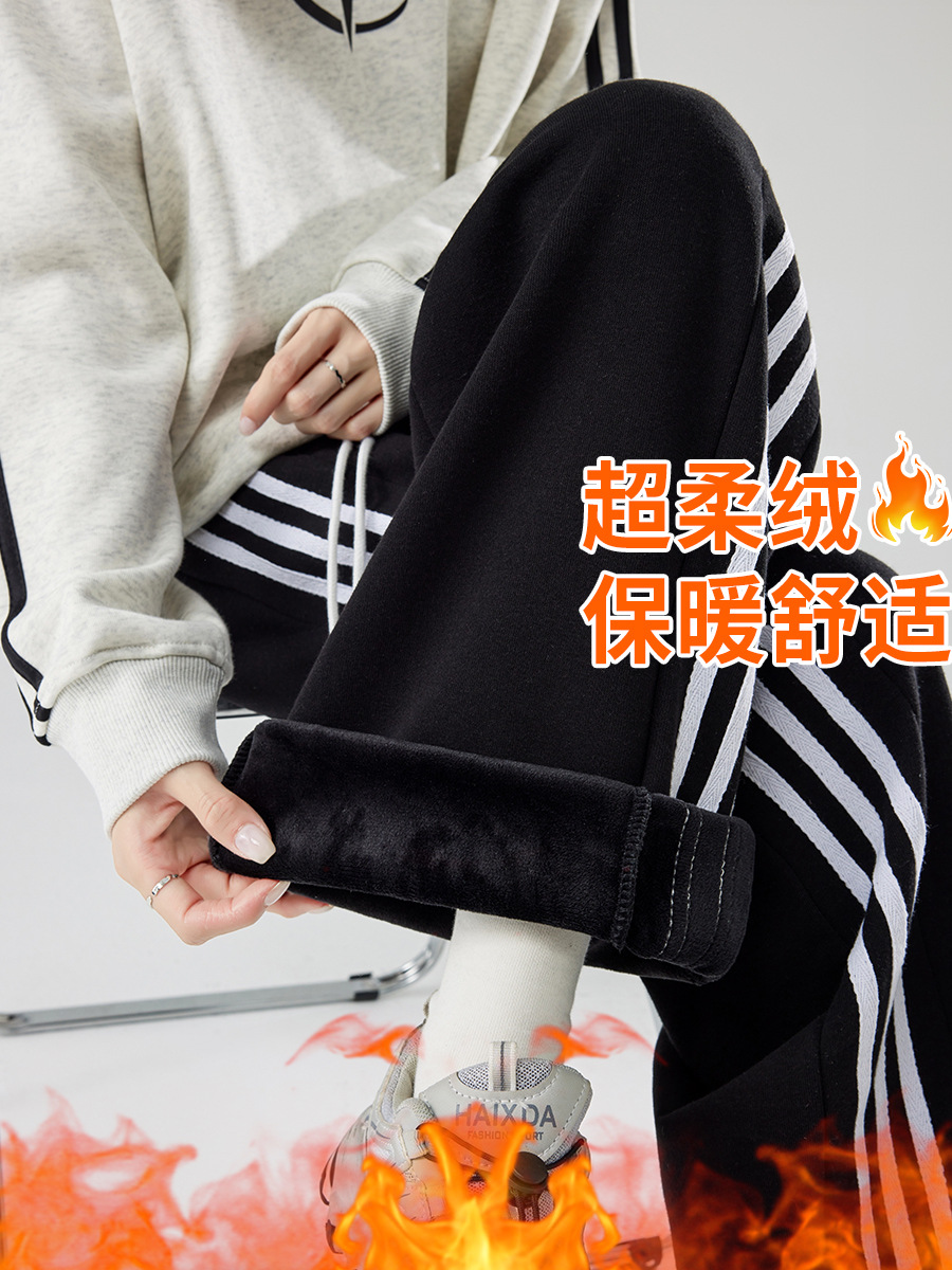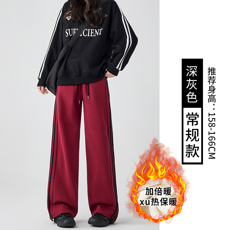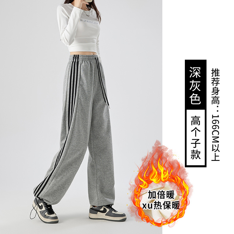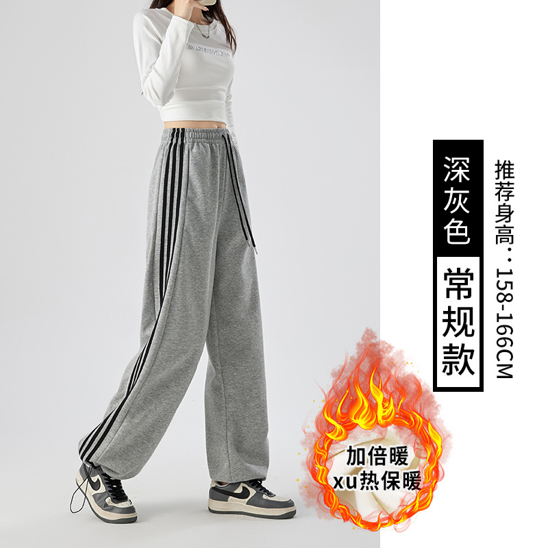 Главная страница > Женские спортивные брюки в полоску, новинка осени-зимы 2025, широкие прямые брюки, повседневный свободный крой, маленький размер, на флисовой подкладке.