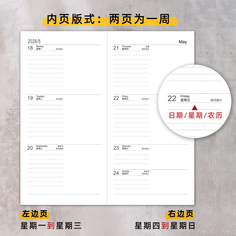 Еженедельник-планер 2026, формат А6, две страницы на неделю с датами, портативная книга для планирования времени
