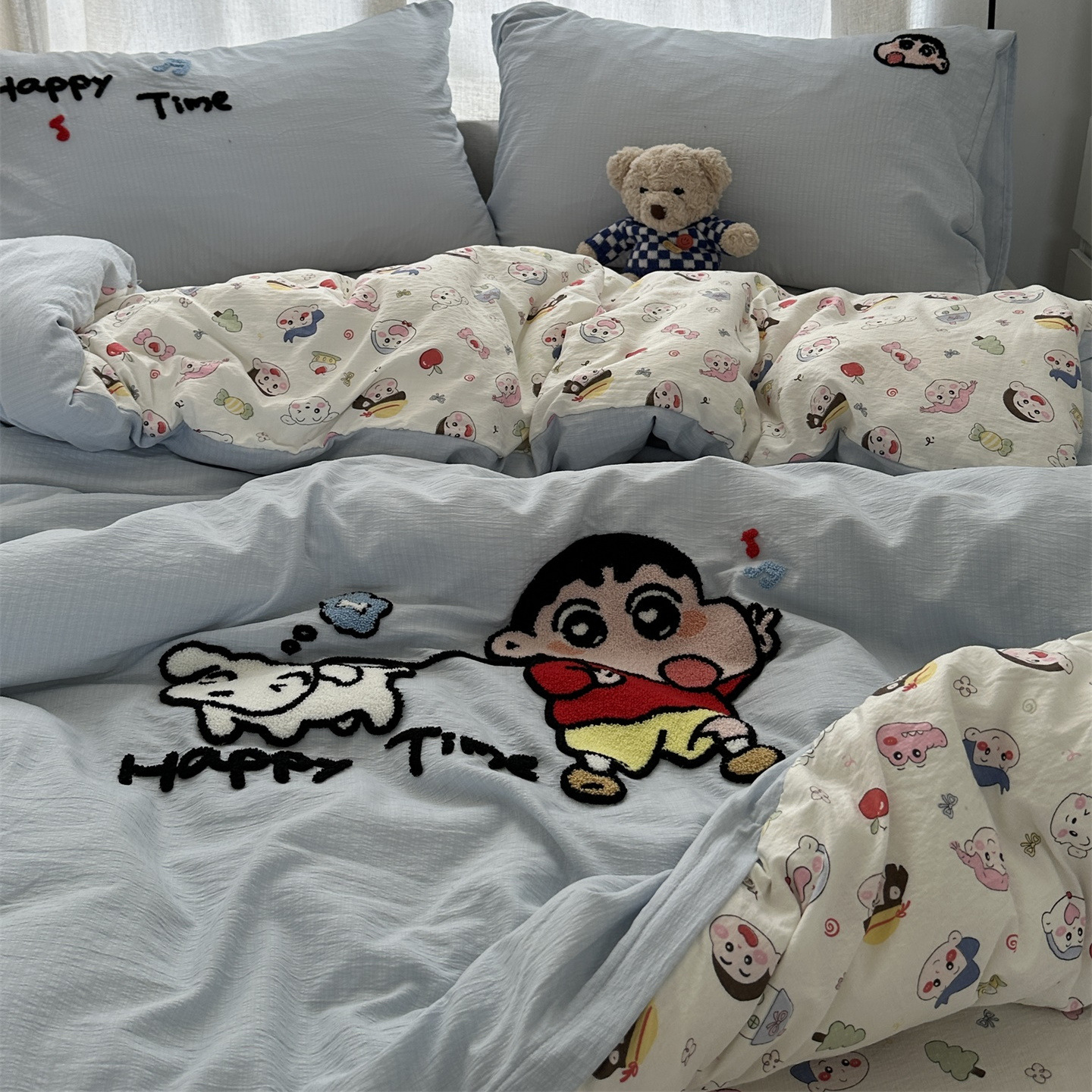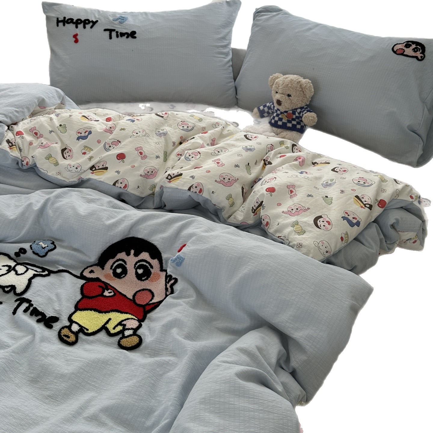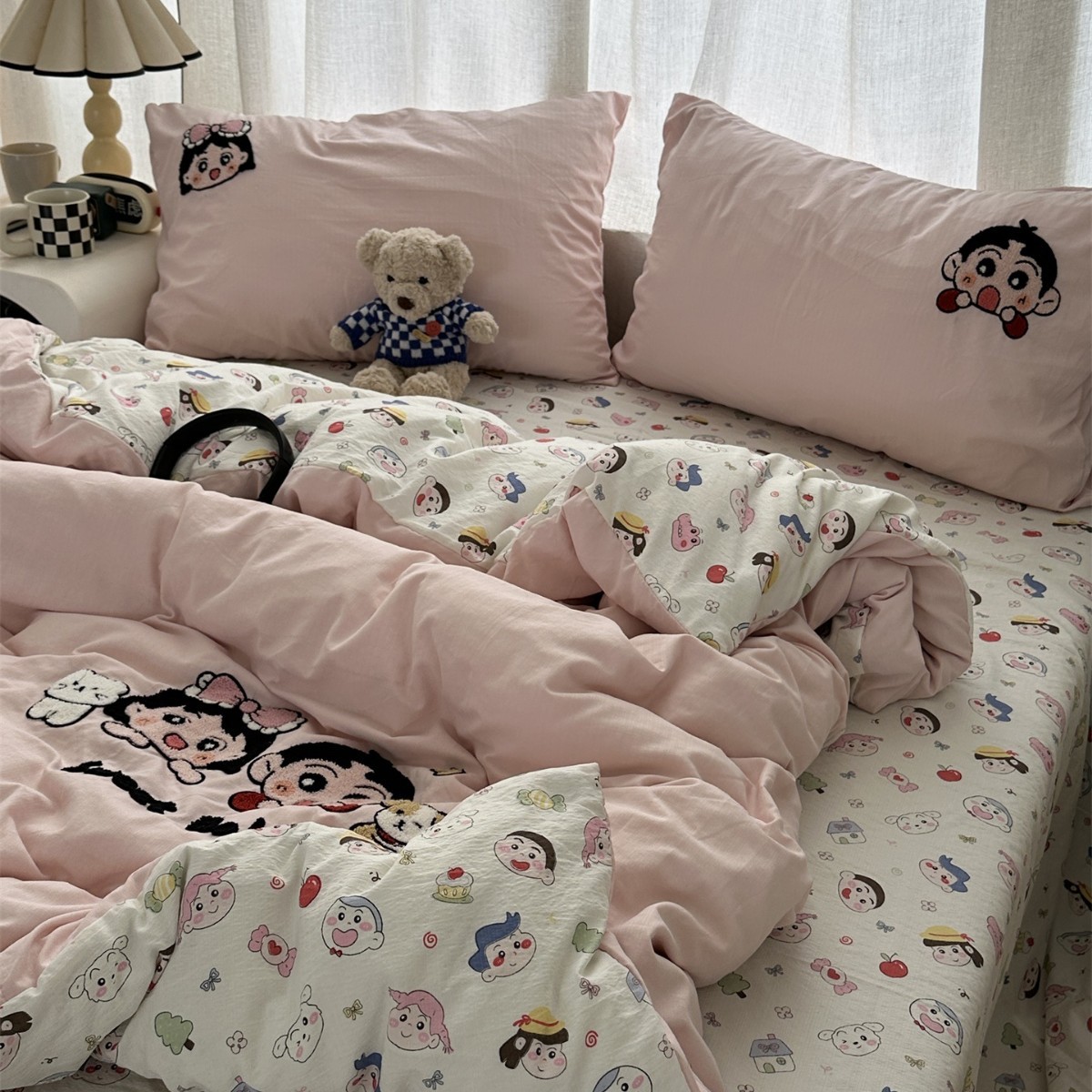 Главная страница > Повседневное мультяшное полотенце для девочек, милое полотенце Crayon Shin-chan, вышитое, стиранное хлопковое постельное белье из четырех предметов, студенческий комплект из трех предметов 4