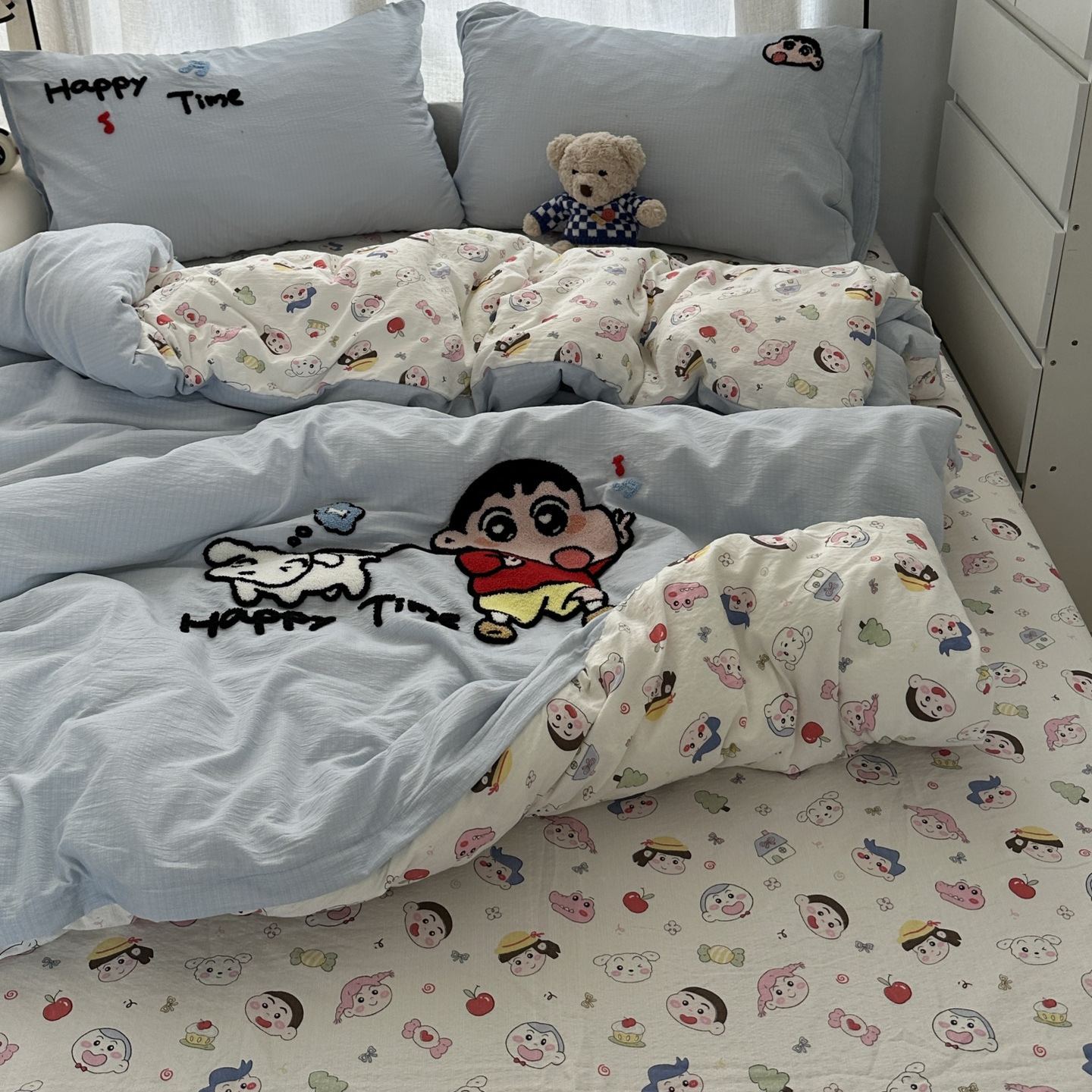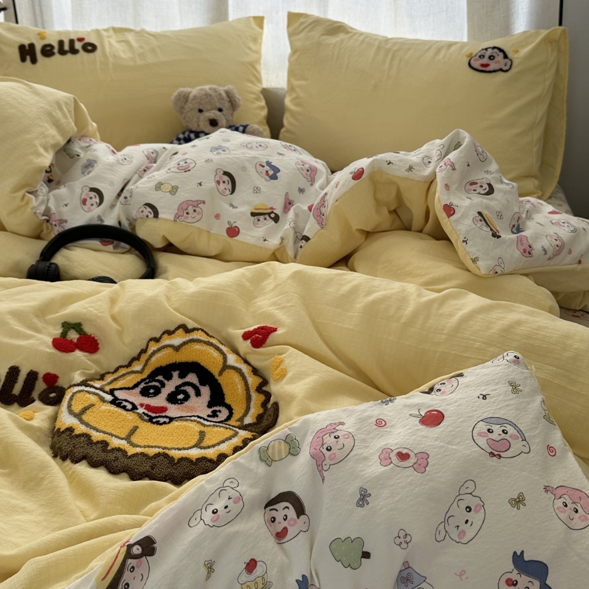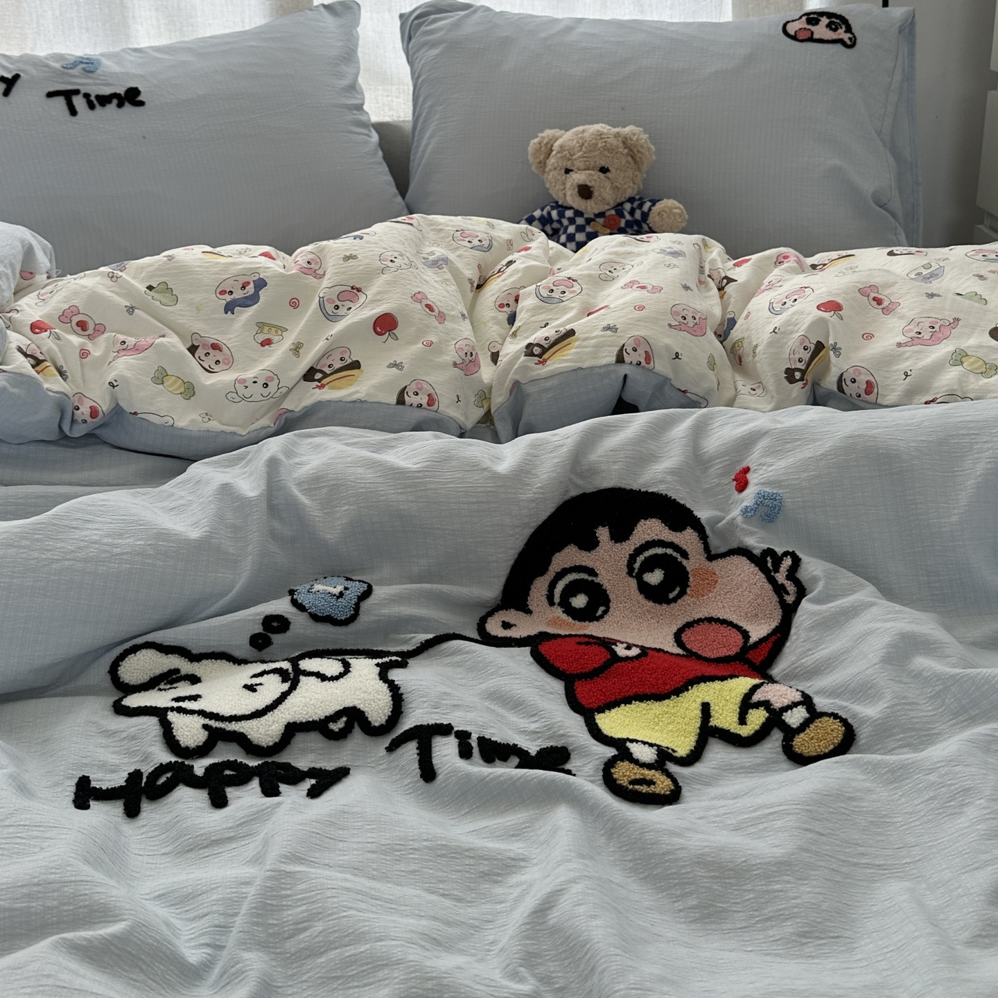 Главная страница > Повседневное мультяшное полотенце для девочек, милое полотенце Crayon Shin-chan, вышитое, стиранное хлопковое постельное белье из четырех предметов, студенческий комплект из трех предметов 4