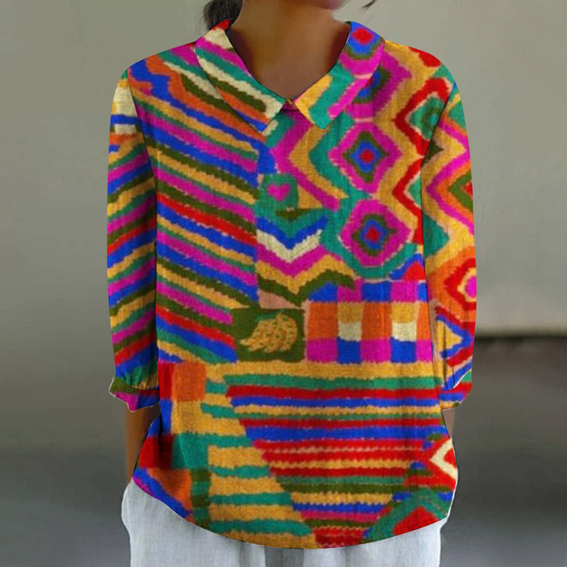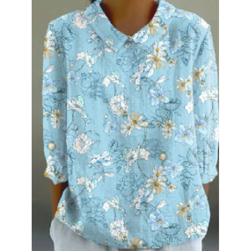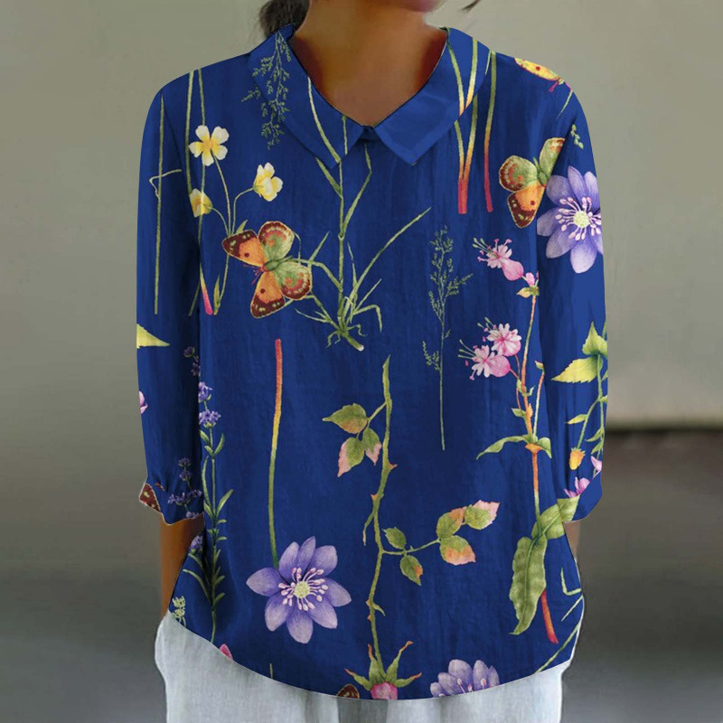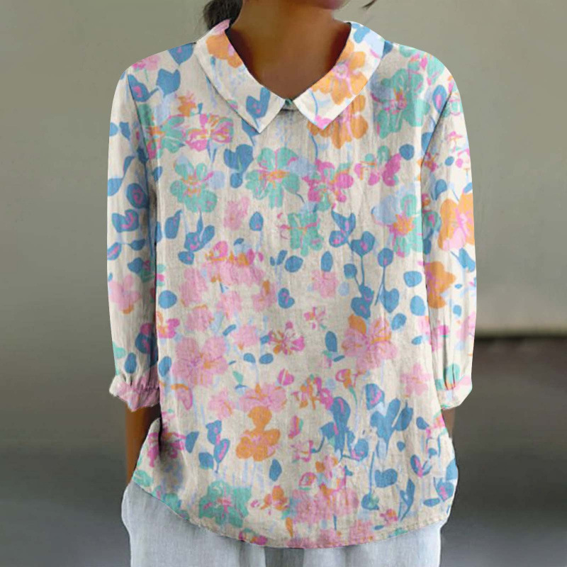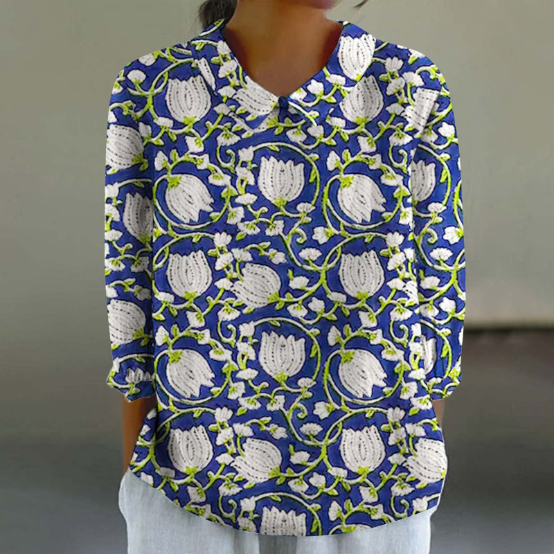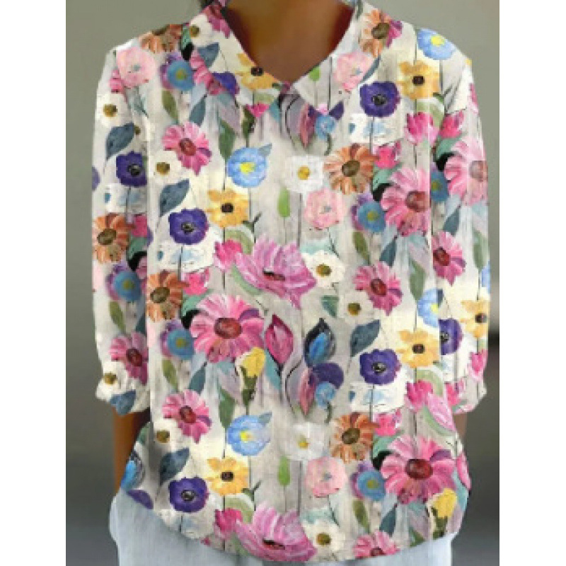2024 Летняя новая рубашка для женщин в китайском стиле с цветочным принтом, креативная ретро-модель для трансграничных покупок