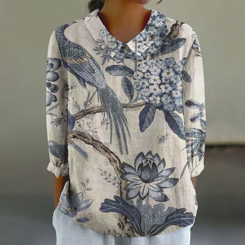 Главная страница > 2024 Летняя новая рубашка для женщин в китайском стиле с цветочным принтом, креативная ретро-модель для трансграничных покупок