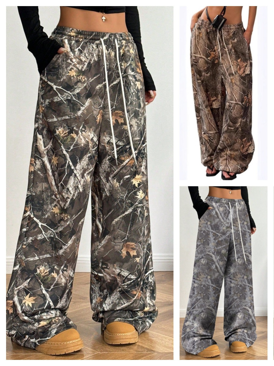 Главная страница > Трансграничные 2024 американские подростки модные повседневные эластичные корсеты камуфляжные принты тонкие широкие брюки