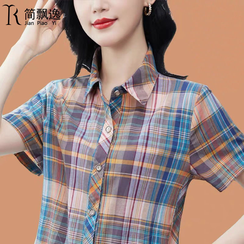 2022 весна и осень новый стиль классическая цветная клетчатая рубашка дамы с короткими рукавами повседневная рубашка женская нижняя рубашка топ женский