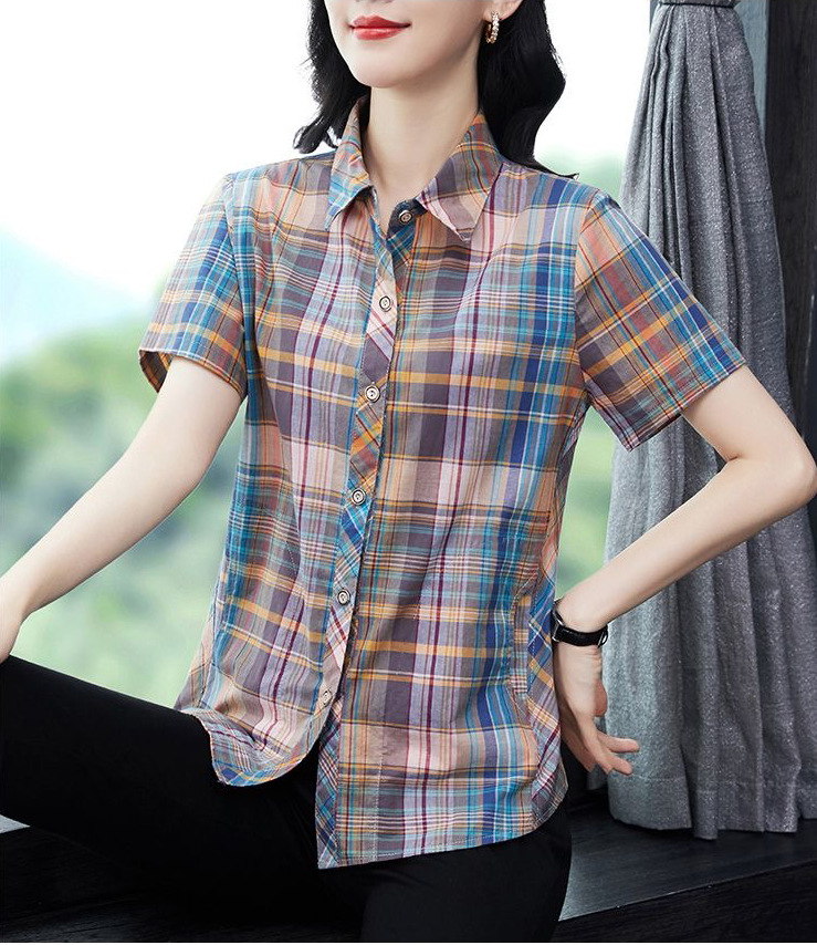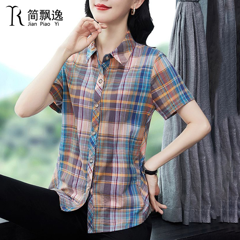 Главная страница > 2022 весна и осень новый стиль классическая цветная клетчатая рубашка дамы с короткими рукавами повседневная рубашка женская нижняя рубашка топ женский