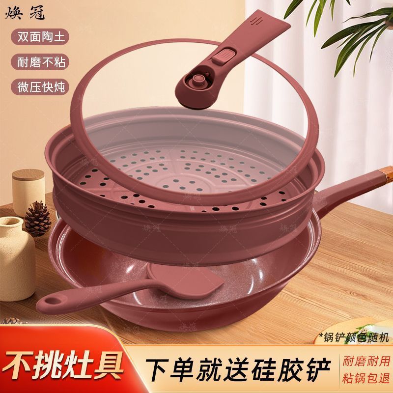 Универсальная антипригарная сковорода из титанового сплава и фиолетовой глины для газовых и индукционных плит